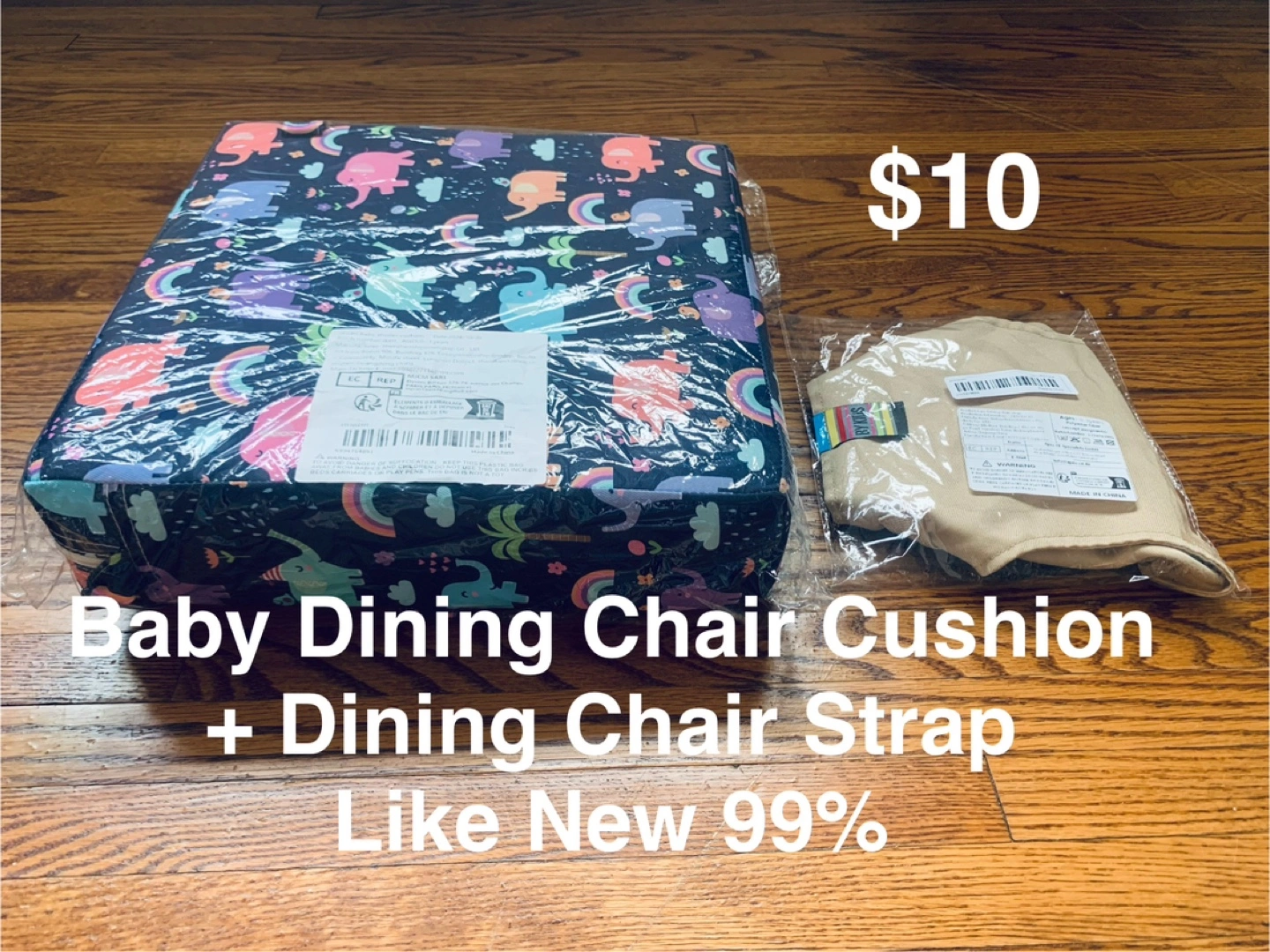 Like New Baby Dining Chair Cushion + Dining Chair Strap