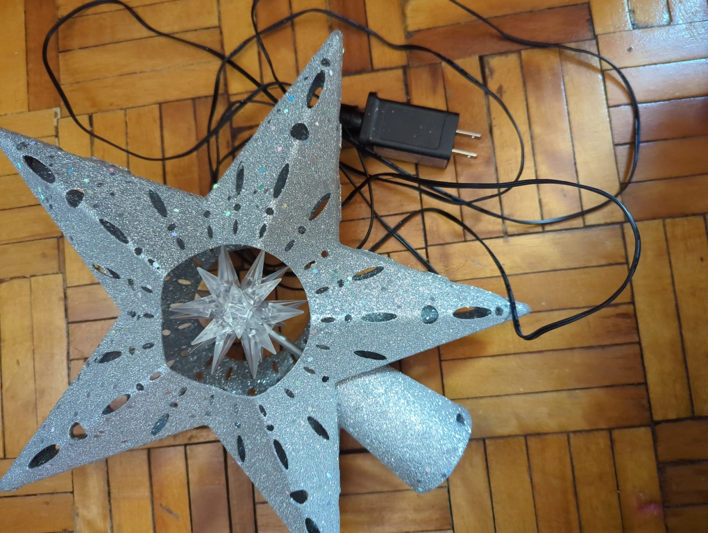 Add some sparkle to your Christmas tree with this glittery star topper! It comes with a plug for easy lighting and will make your tree shine this holiday season