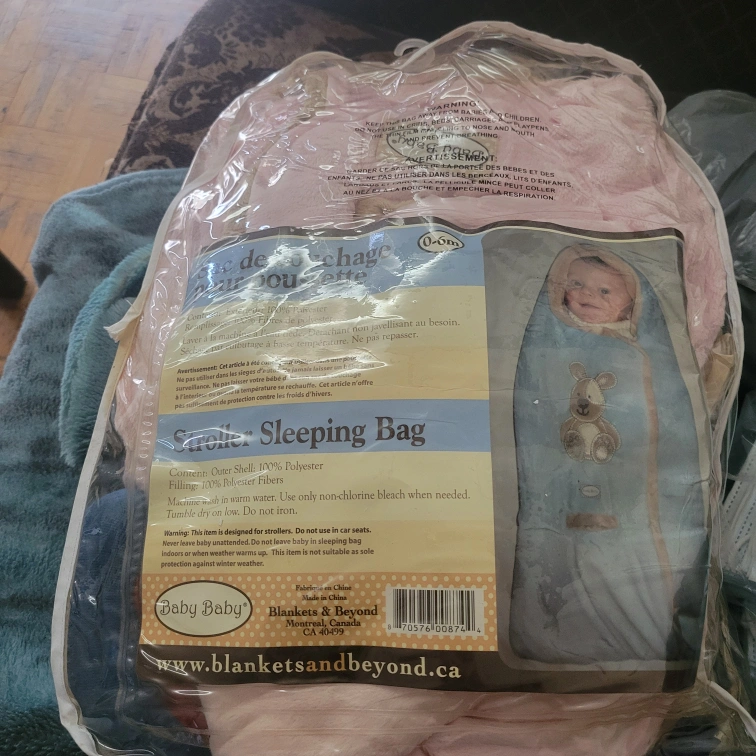 Keep your little one cozy with this Baby Baby stroller sleeping bag! It's designed for strollers, with a 100% polyester outer shell and filling. Suitable for babies aged 0-6 months. Machine washable for easy cleaning! Just use non-chlorine bleach when needed and tumble dry on low. Serious buyers please I don't deliver. Door pick up only.