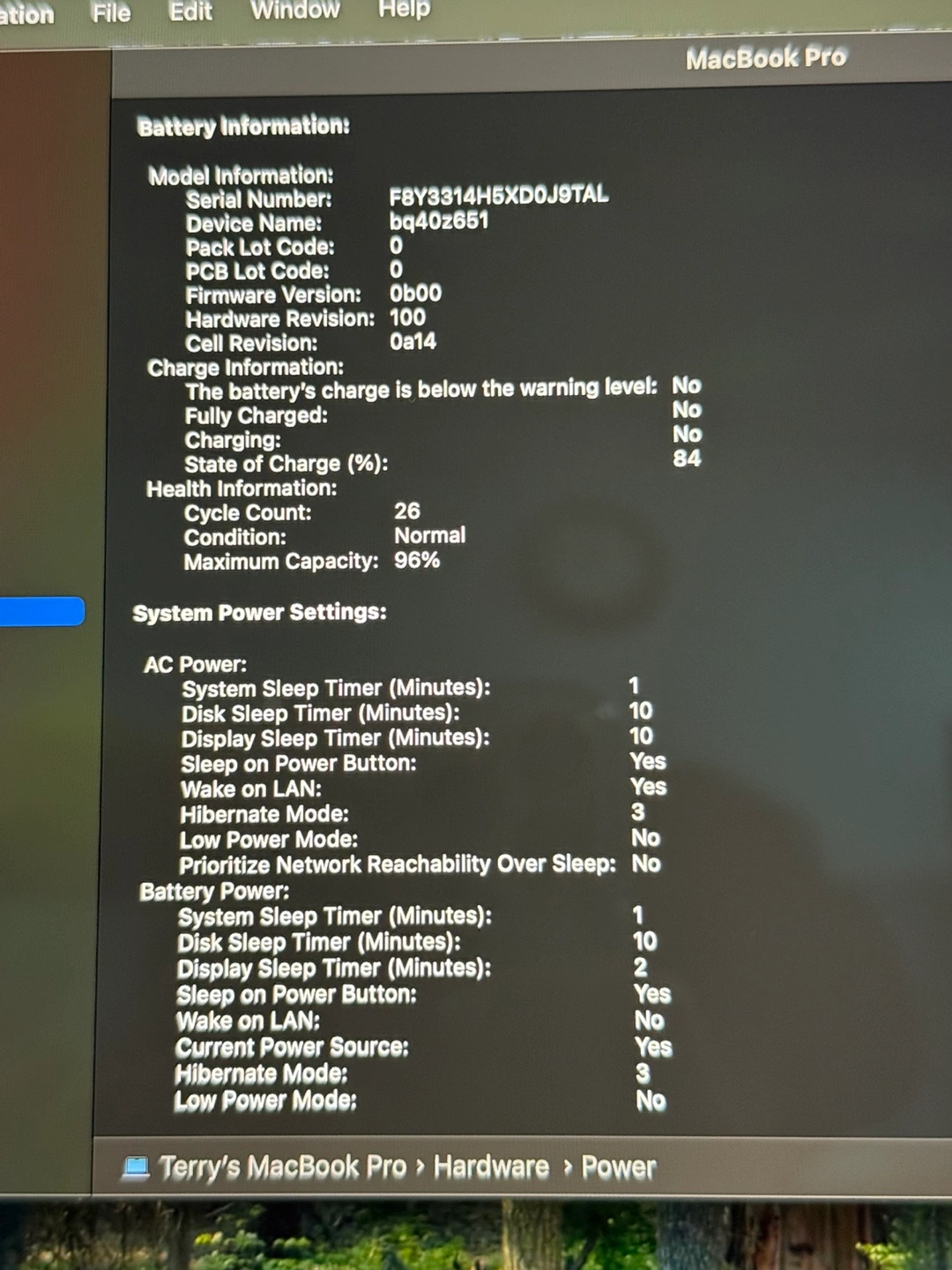 26 charge cycles 96% Battery Health