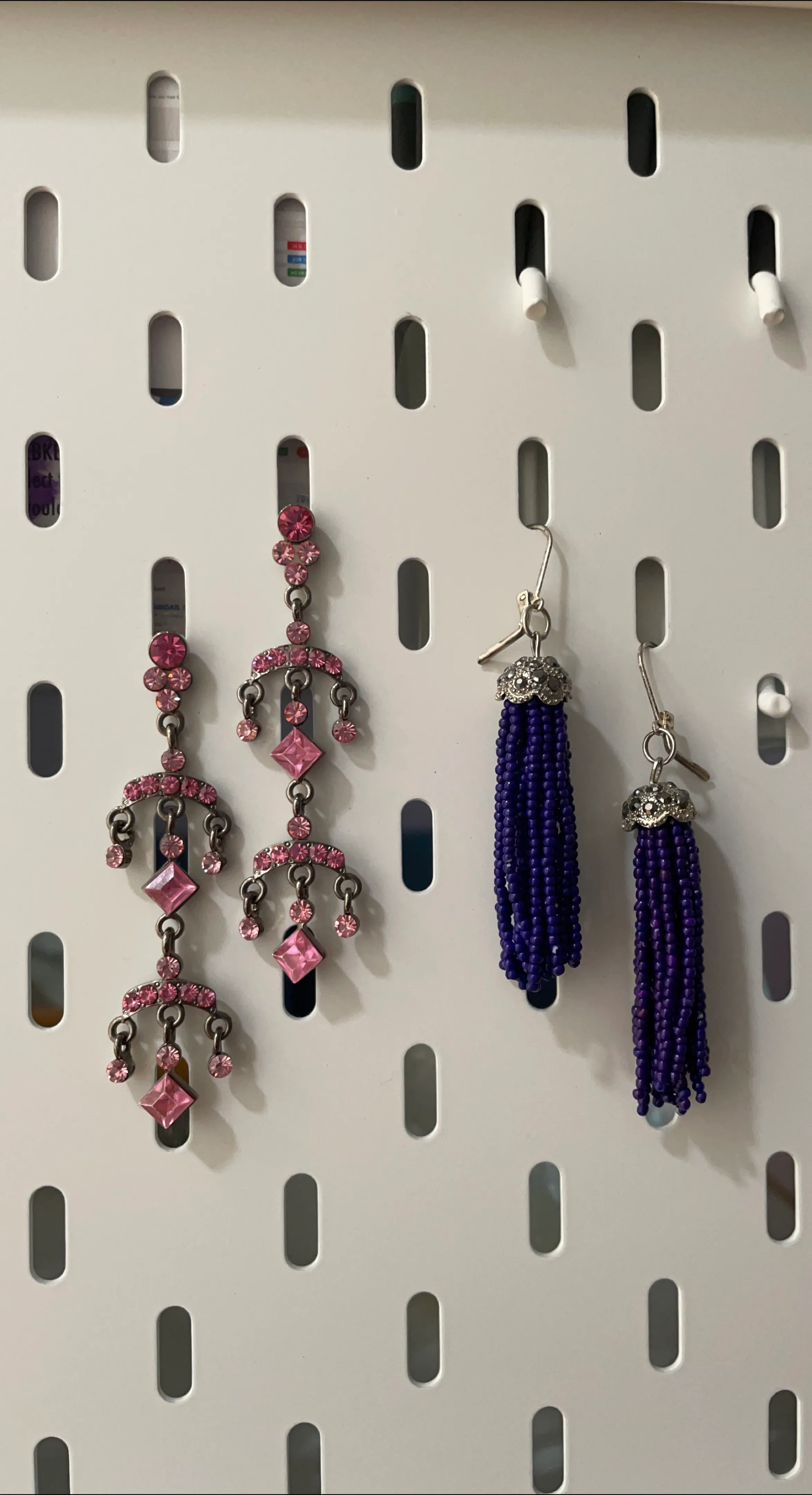 Selling two pairs of earrings. One pair is pink and the other is purple. They're both in great condition!