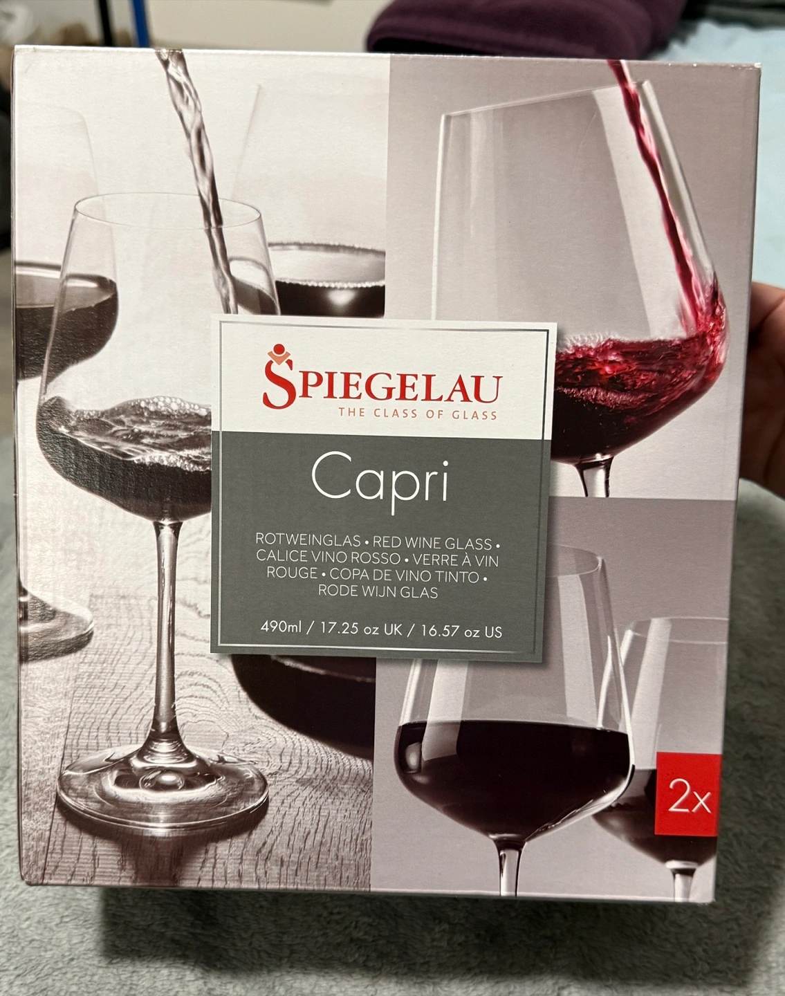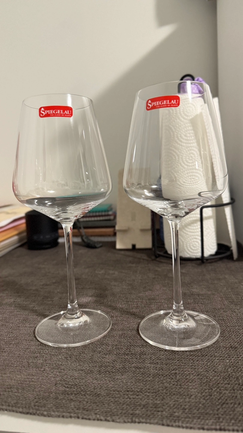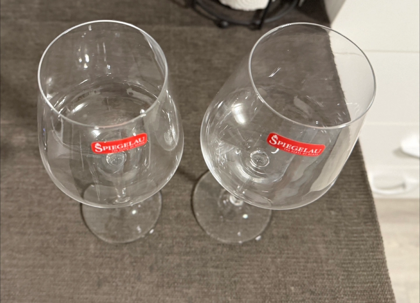 Selling a set of two Spiegelau wine glasses! They come in their original box, perfect for gifting or adding a touch of elegance to your next dinner party. These glasses are in great condition and never used. Selling it because I have the same glasses and received this as a gift.
