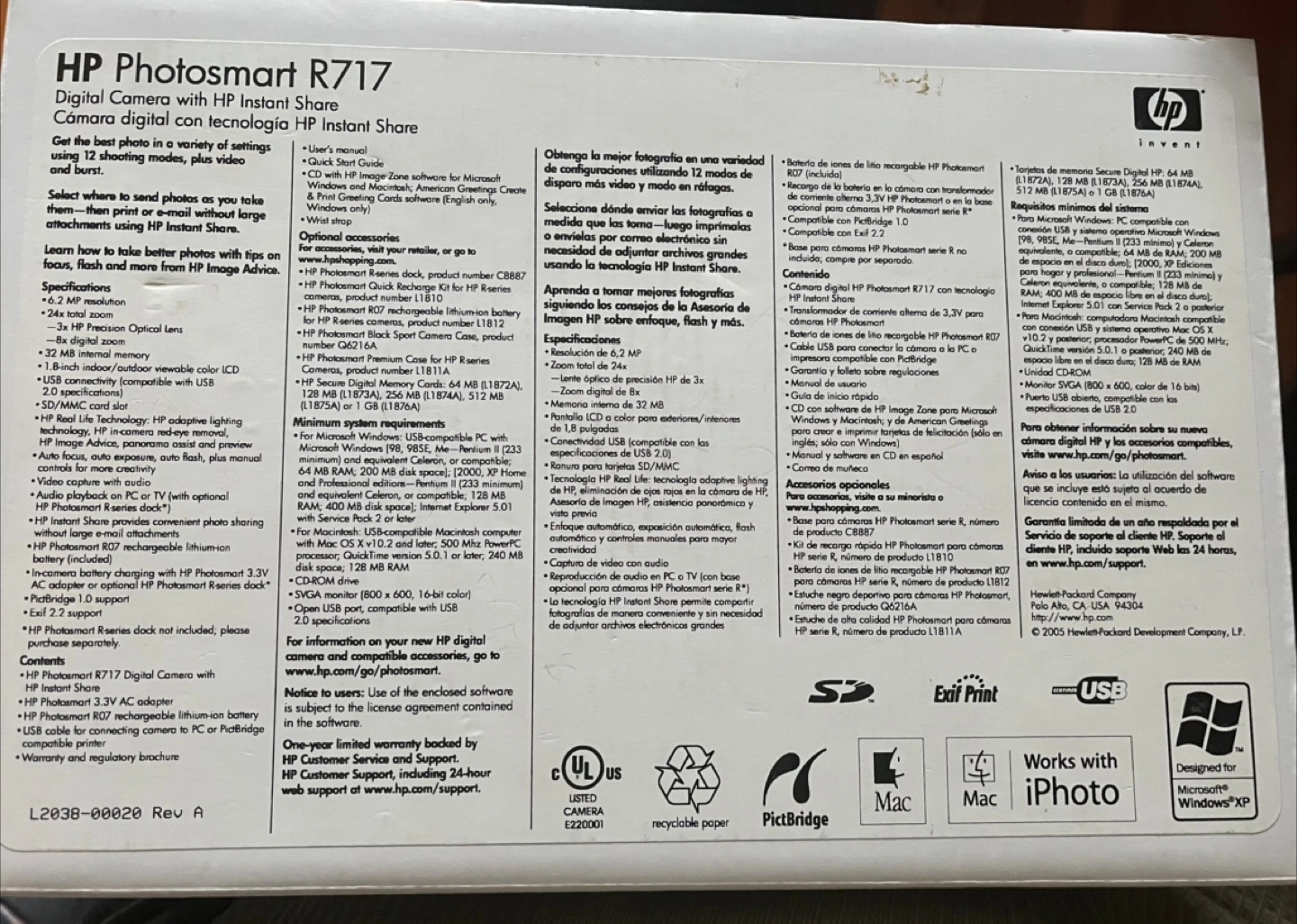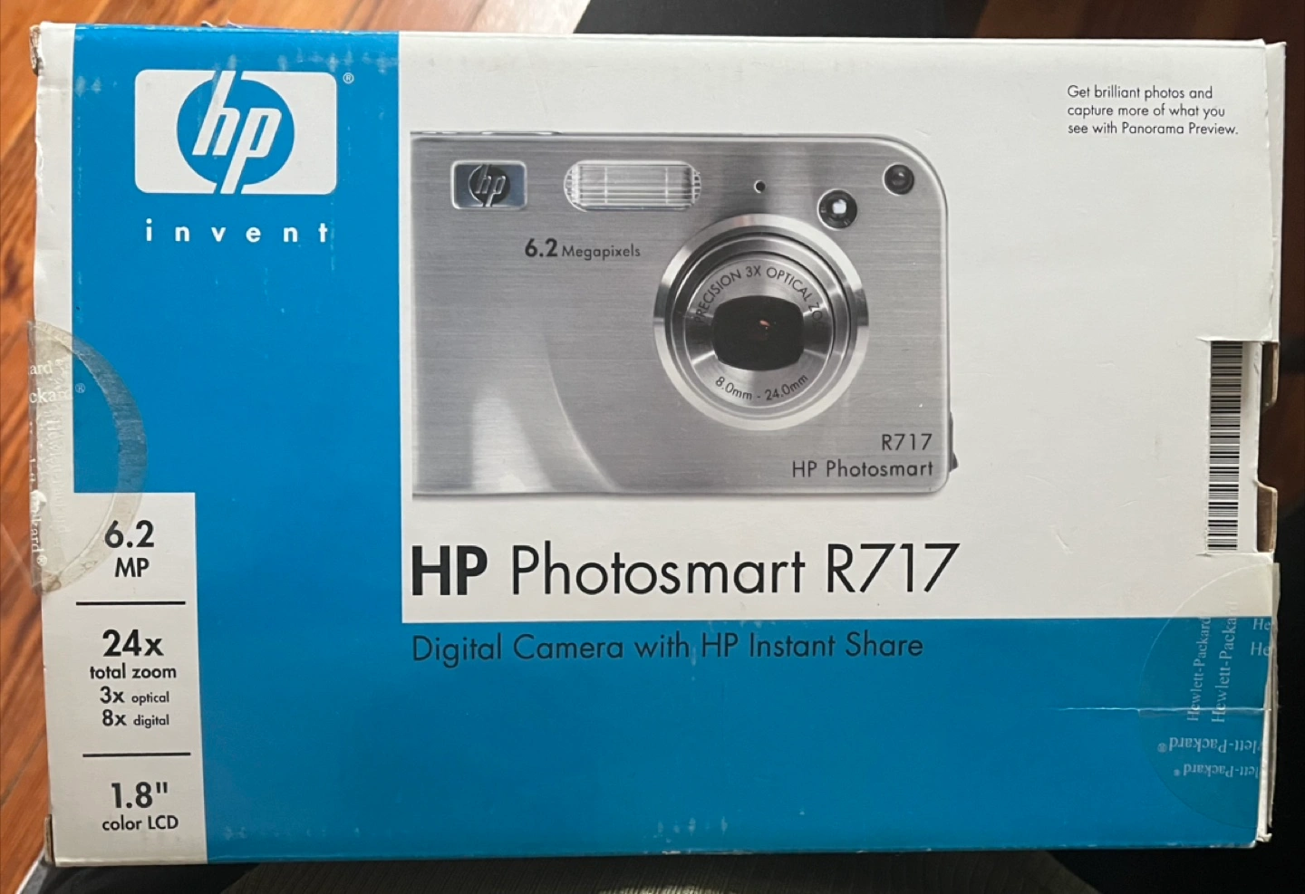 Selling an HP Photosmart R717 digital camera! It's a 6.2 megapixel camera with 3x optical zoom and an 1.8" color LCD screen. It also features HP Instant Share for easy photo sharing. Comes with all original components in the box!