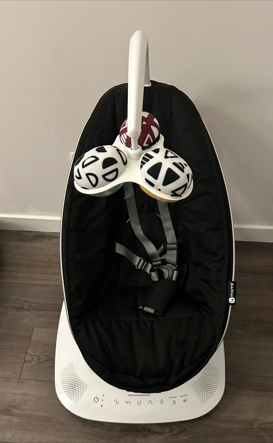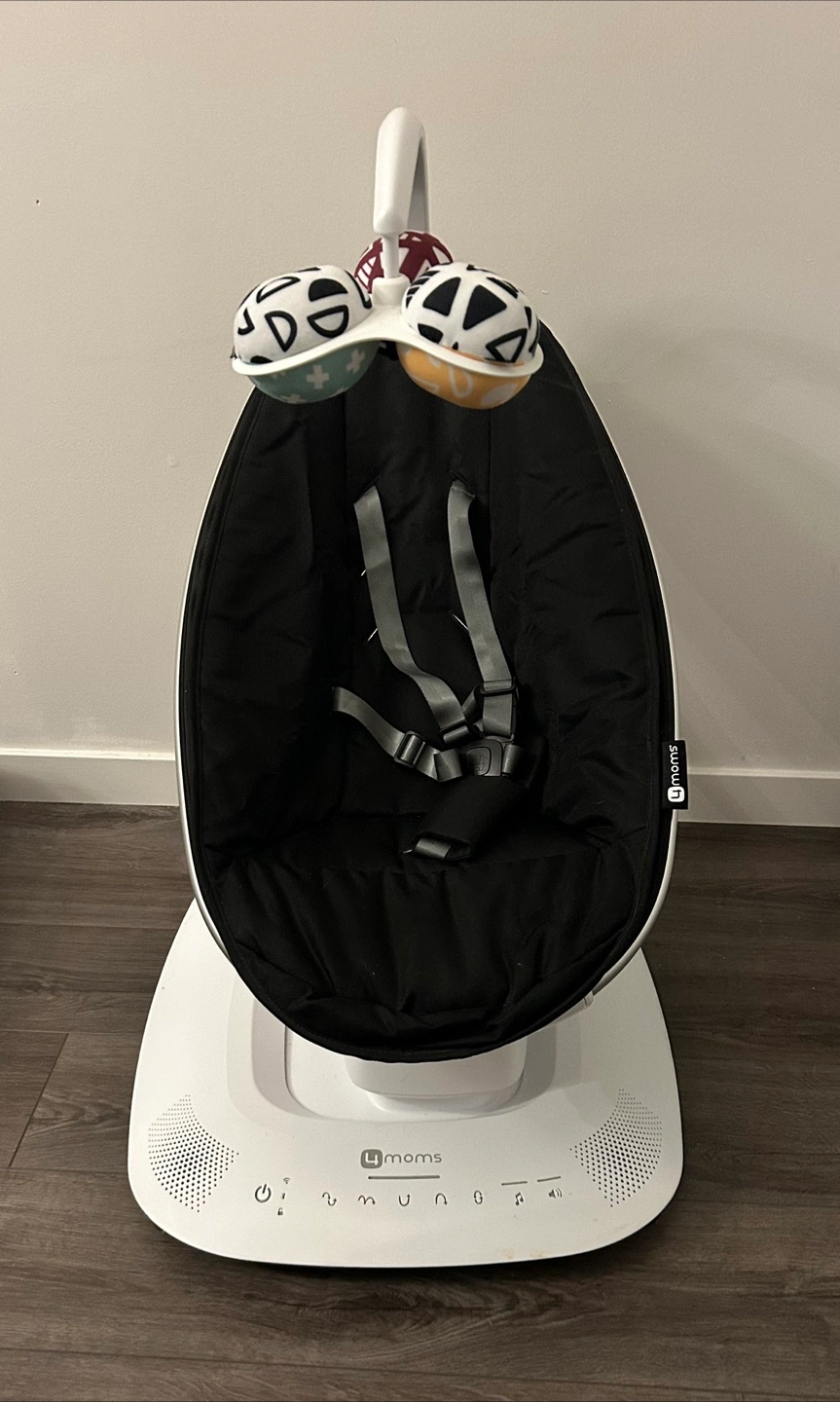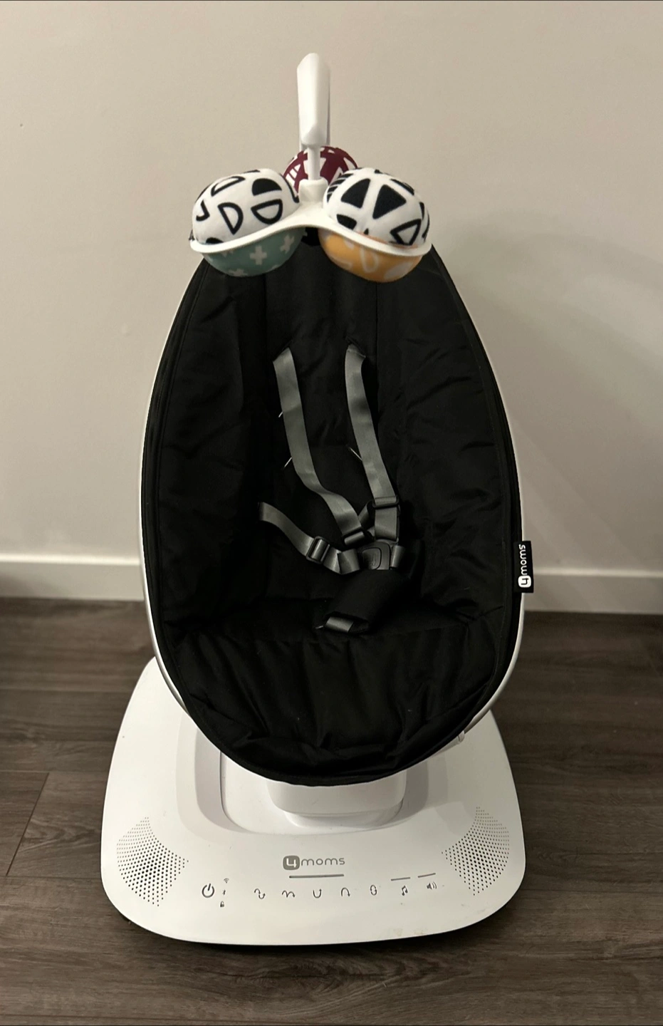 Selling a 4moms MamaRoo baby swing in great condition! This swing is designed to mimic the natural motions parents use when comforting their babies. It features multiple speeds and built-in sounds to help soothe your little one. A great addition to any nursery!