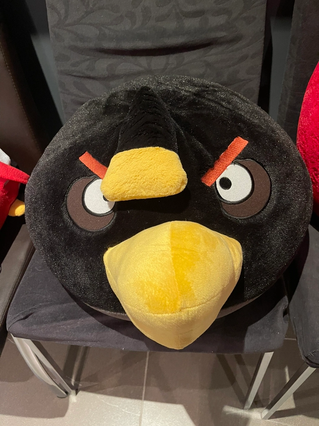 Selling two Angry Birds plush toys! One is the black bird and the other is the red bird. They're both like new and ready for a new home! As big as a chair! Price is per item stuffed animal.