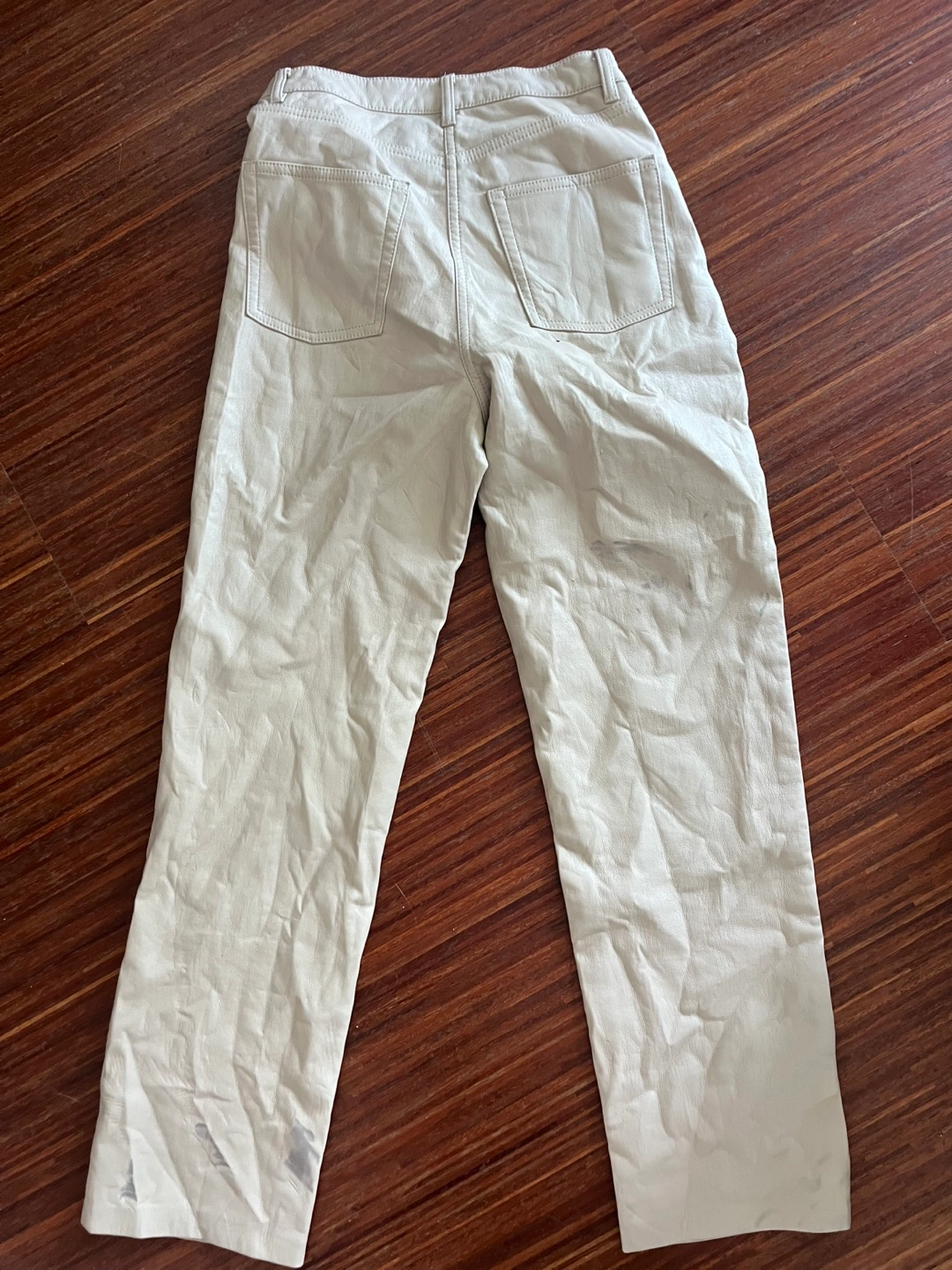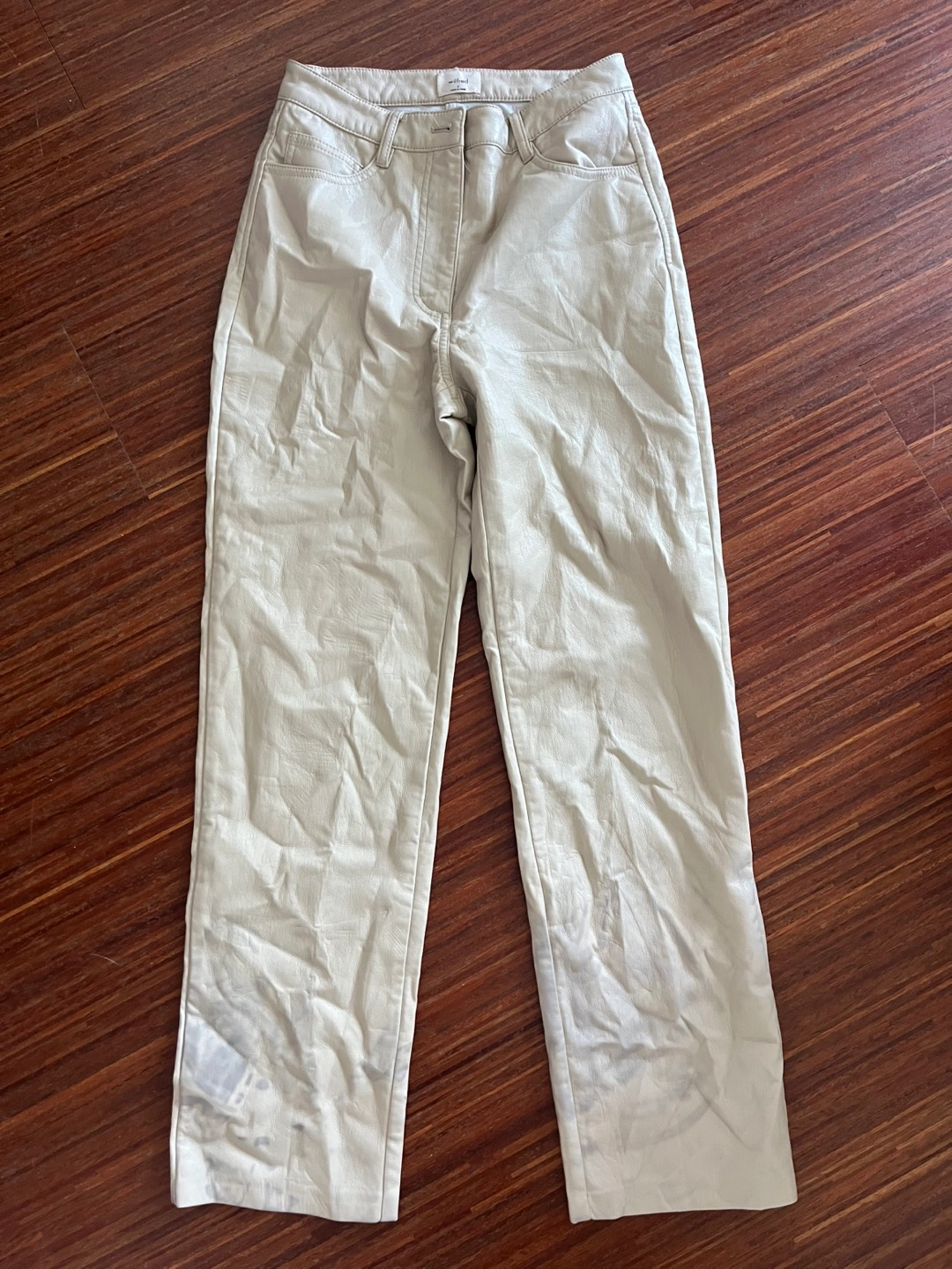 These are Wilfred vegan leather pants in a size 2. They have some marks as shown in the photos. Great for a night out!