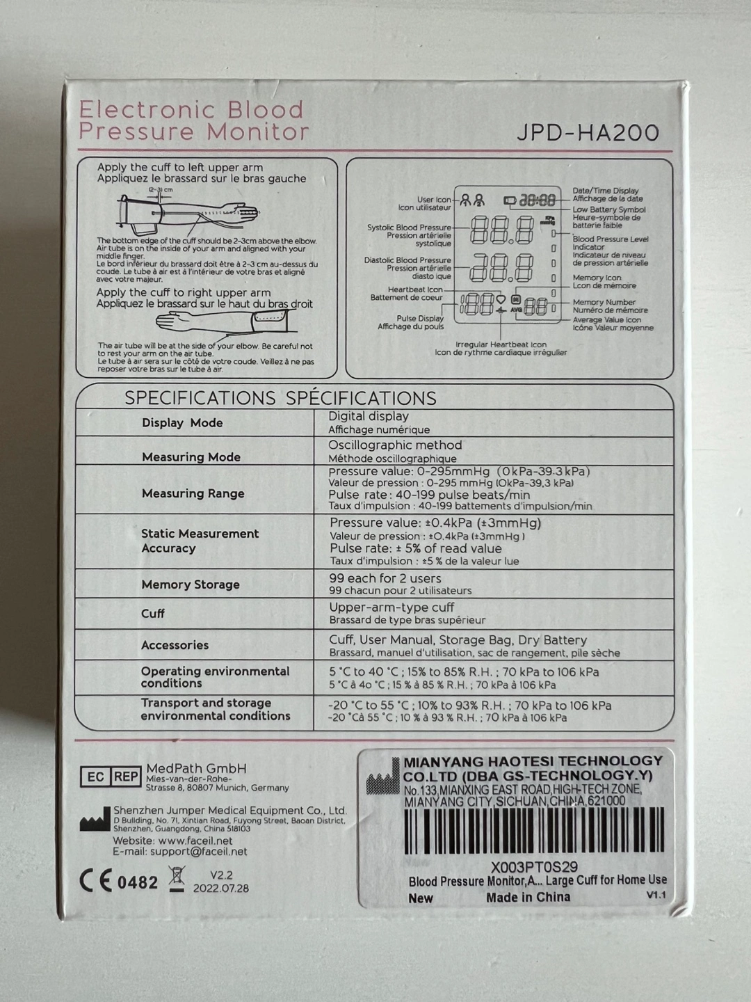 Selling a JPD-HA200 electronic blood pressure monitor.