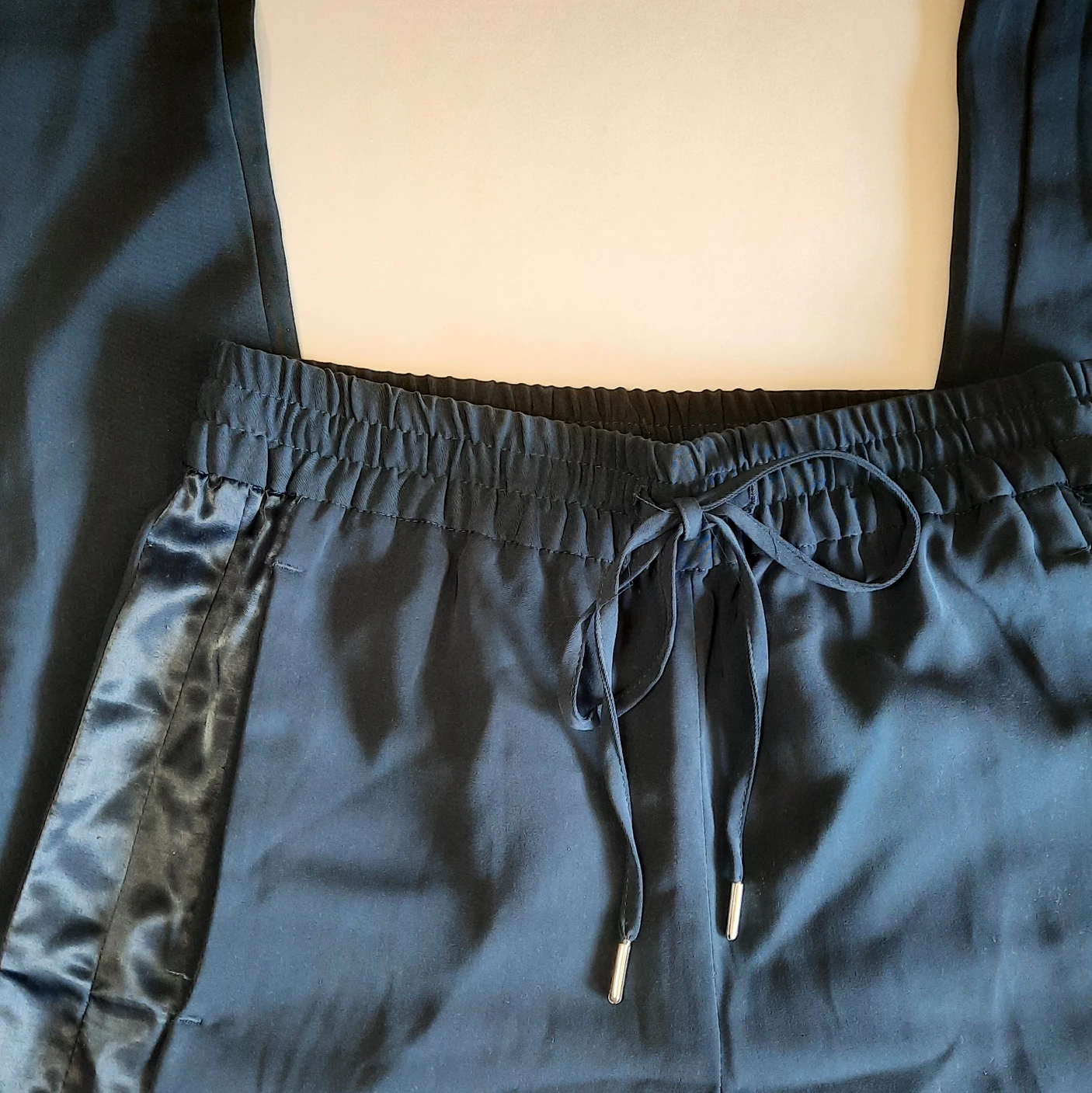- Satin stripe details on both sides, very minor pilling of satin