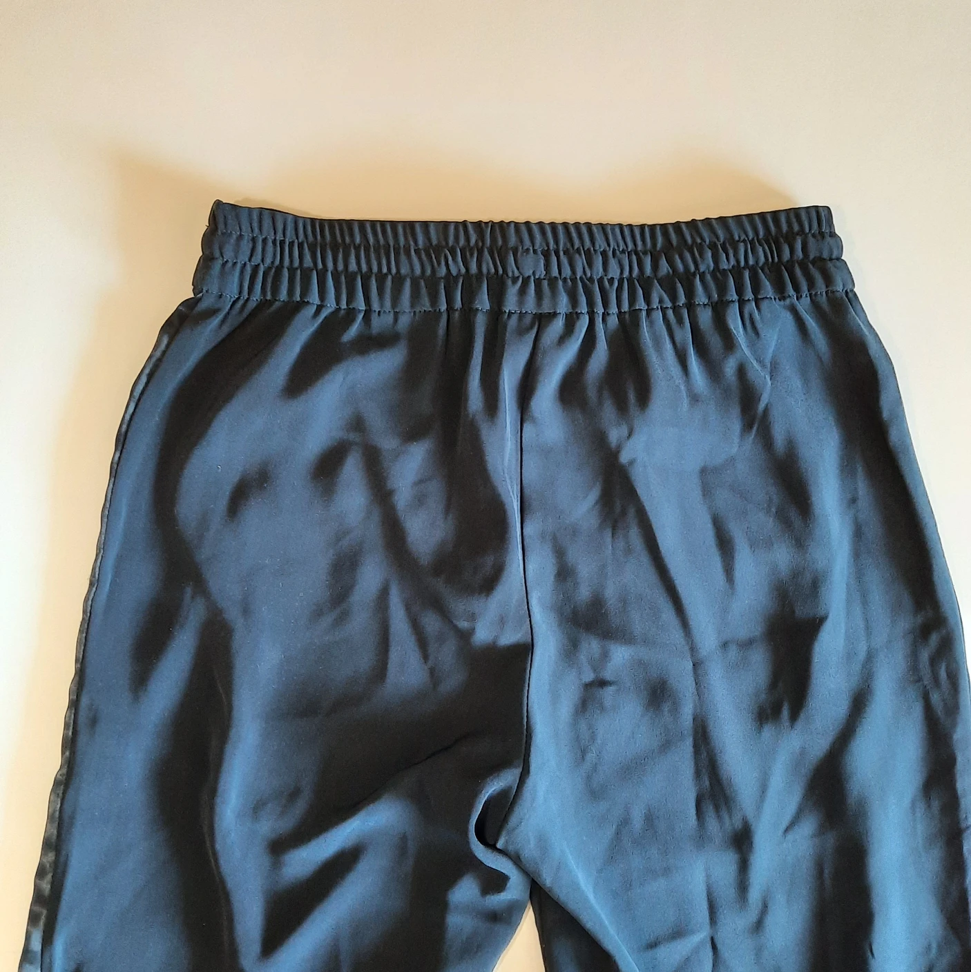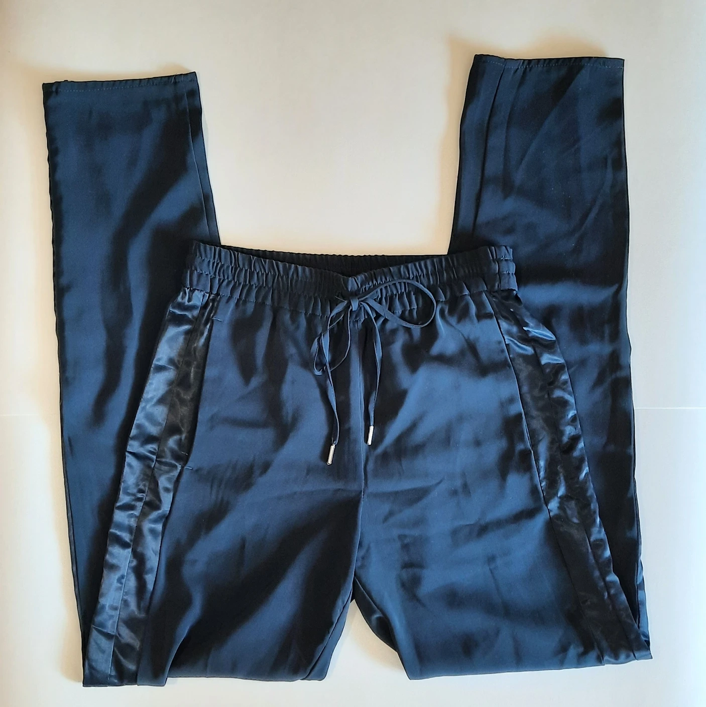 H&M: Navy Blue Women's Pants with Satin Stripe Details at Sides