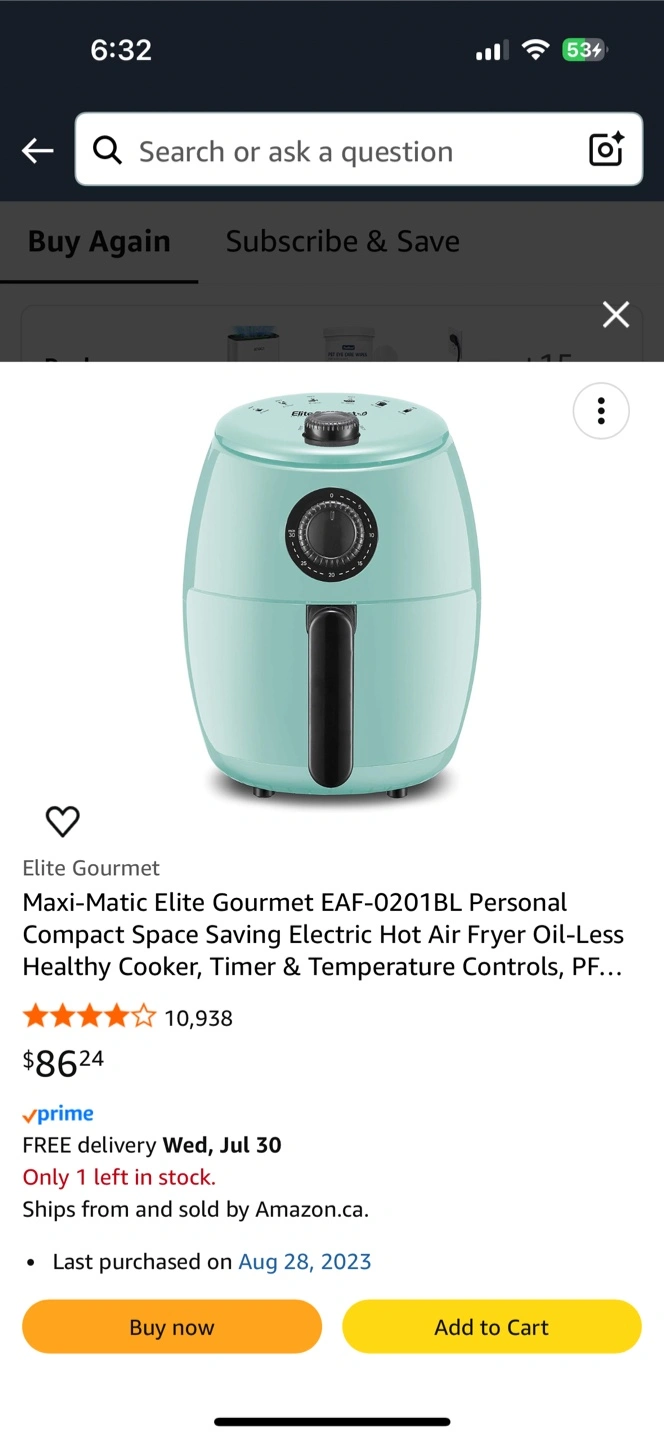 Looking to sell my compact air fryer! It's in great shape and ready for a new home. MINT CONDITION because I have barely used it. It is very clean and works amazing. Originally bought for $86.24! Maxi-Matic Elite Gourmet... https://www.amazon.ca/dp/B082JSYK43?ref=ppx_pop_mob_ap_share Pickup in Yorkville, 57 Charles at Bay