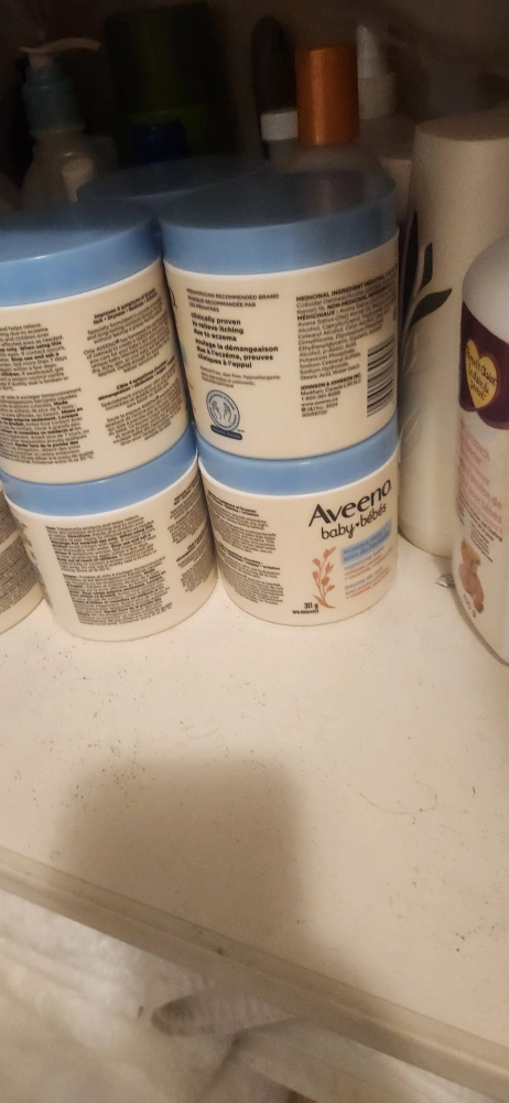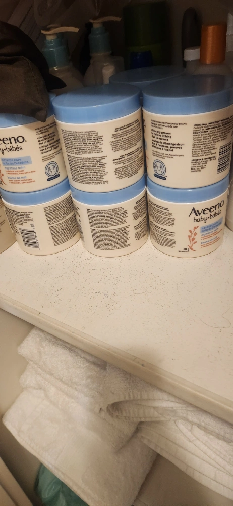 Selling a jar of Aveeno Baby Eczema Care Nighttime Balm. It contains colloidal oatmeal and ceramide, and is fragrance-free. Perfect for soothing your little one's skin!