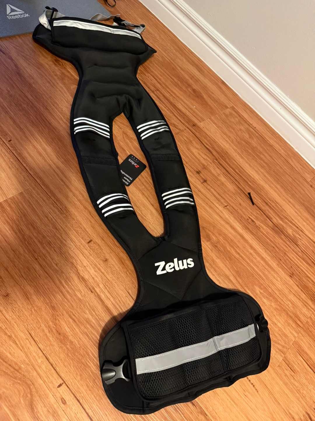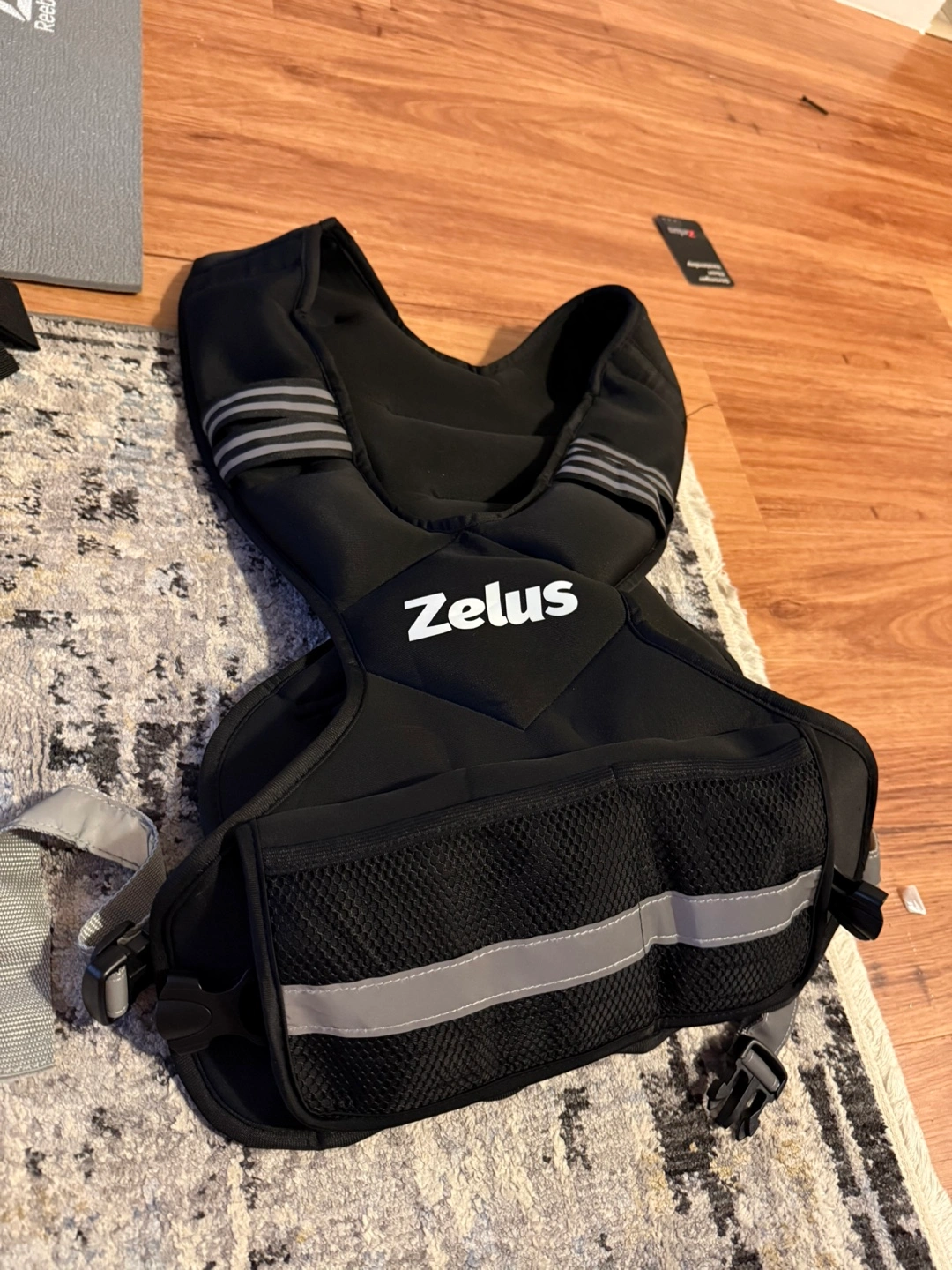 Selling a Zelus weighted vest in black. This vest is great for adding resistance to your workouts! It's in good condition and ready to help you level up your fitness routine