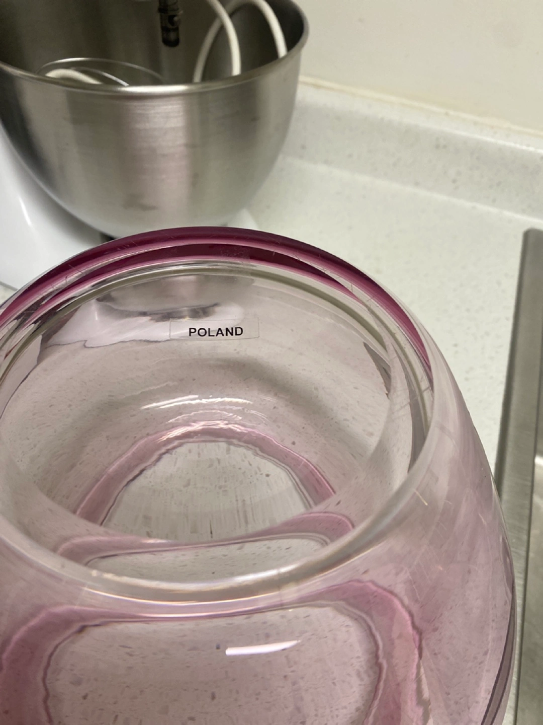 Selling a lovely purple glass vase! It's perfect for displaying plants or flowers. The vase has a unique shape and is made in Poland.