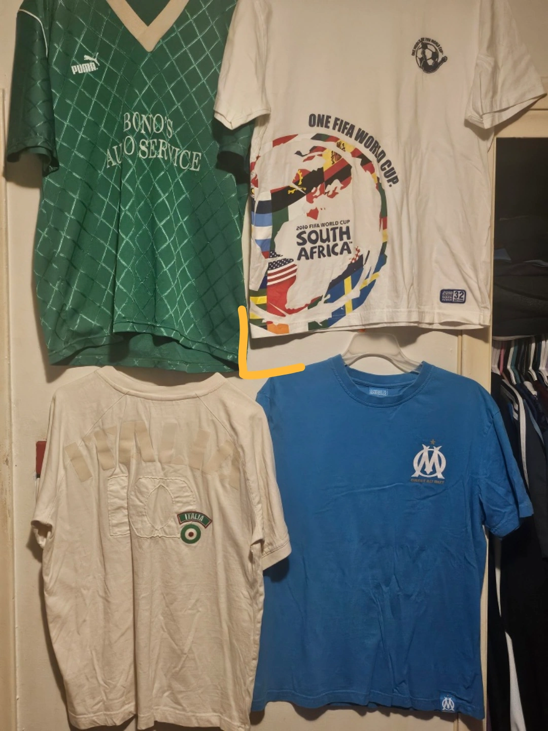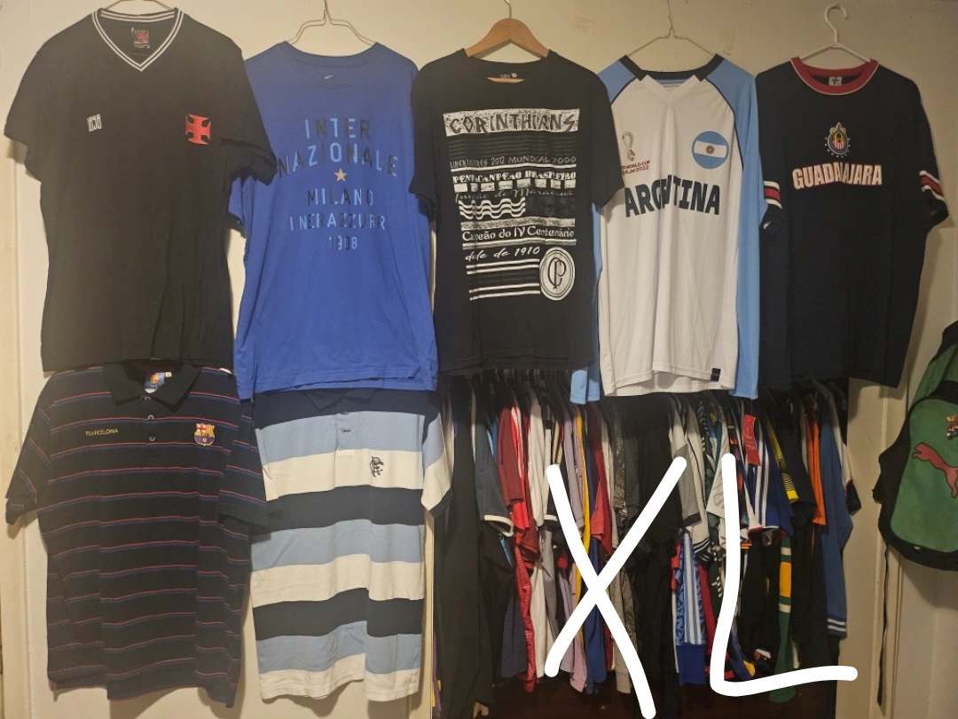 Collection of club shop shirts from a small variety of soccer teams. XL and L sizes available.