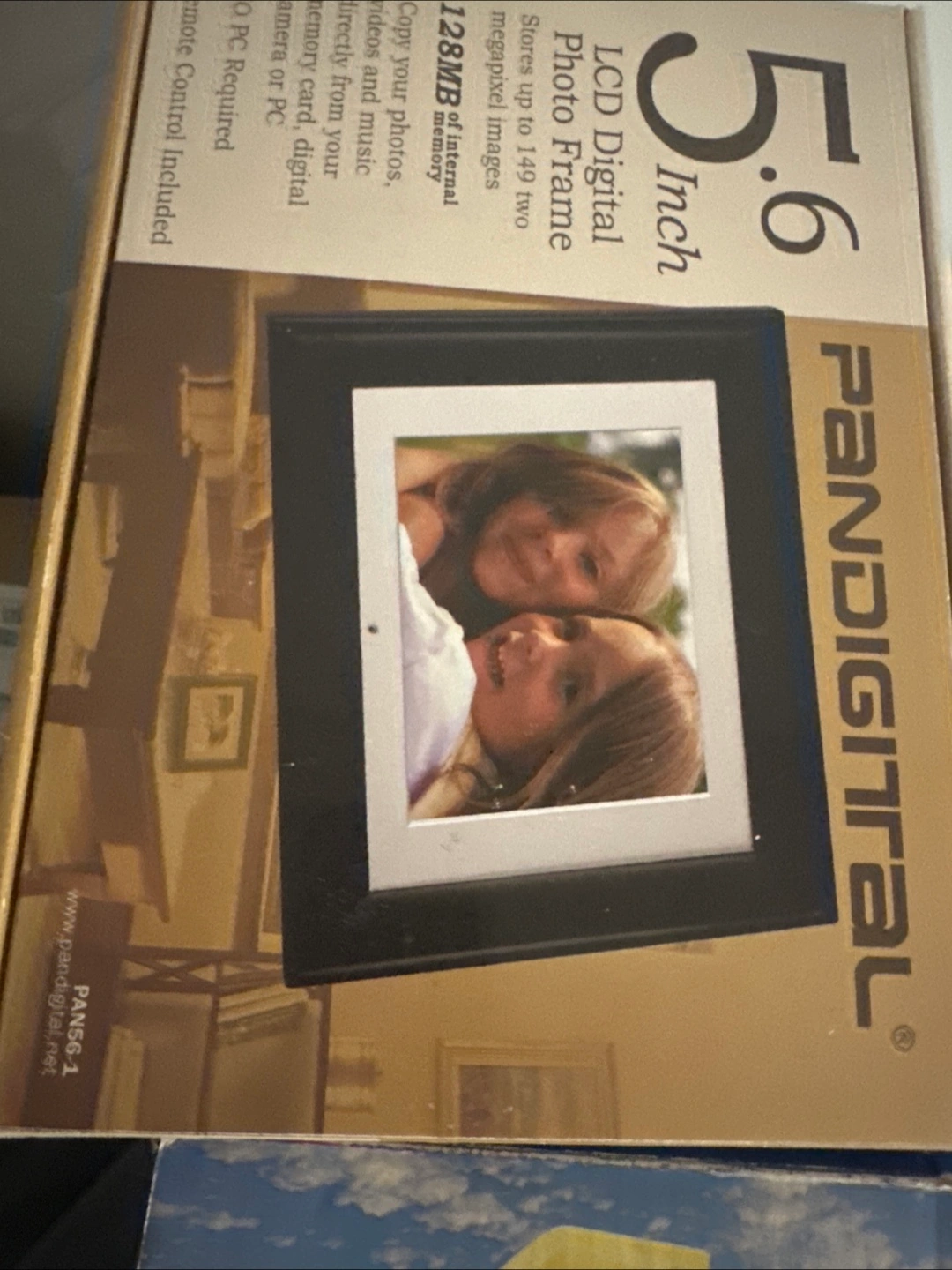 Selling a Pandigital 5.6 inch LCD digital photo frame. It stores up to 149 two megapixel images and has 128MB of internal memory. You can copy your photos, videos and music directly from your memory card, digital camera, or PC. Remote control is included.