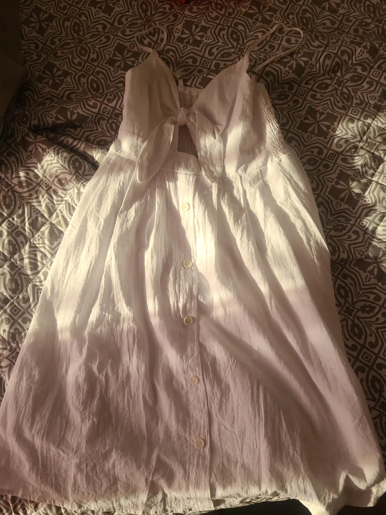 Selling a cute white sundress! It's a size small and features a tie detail at the front. Material is linen!
