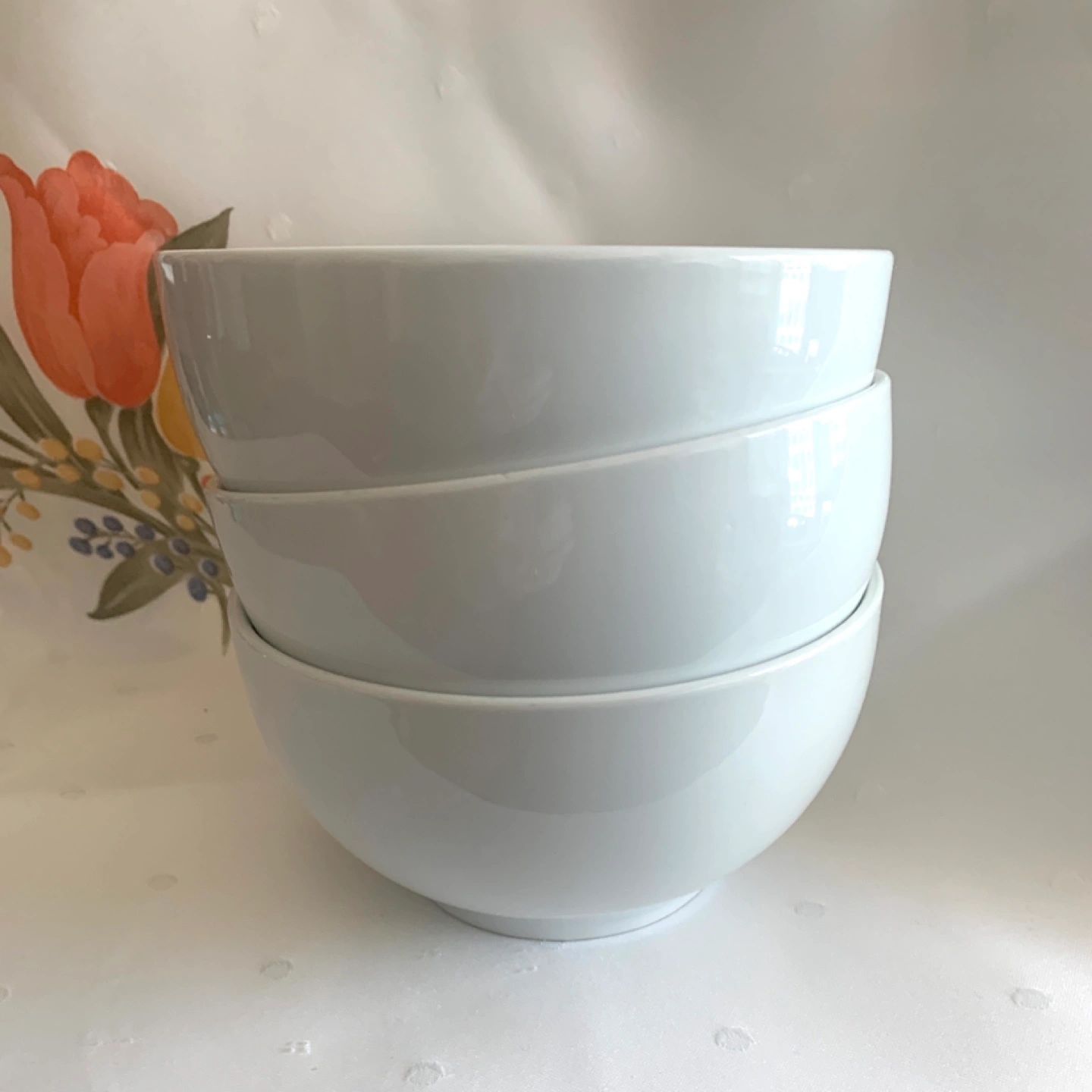 Selling a set of three simple white bowls for five total. They're in great shape and ready for a new home. Perfect for cereal, soup, or snacks!