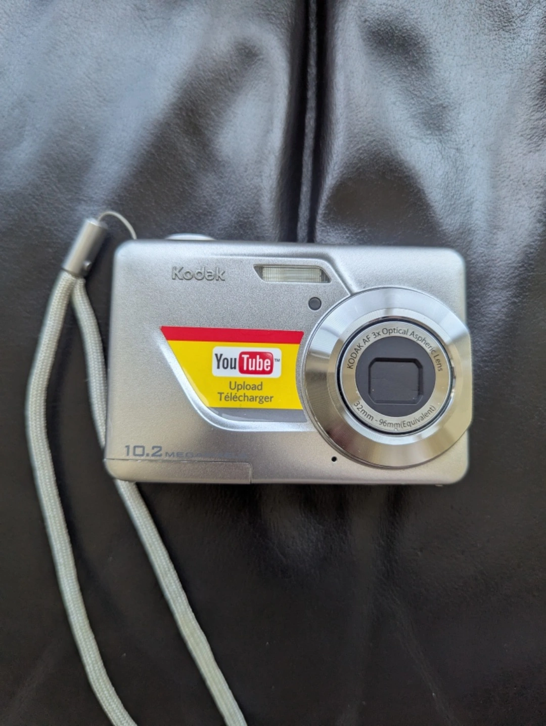 Selling a Kodak digital camera with 10.2 mega pixels. It features a Kodak AF 3x Optical Aspheric lens (32mm-96mm equivalent). It also has a YouTube upload feature.