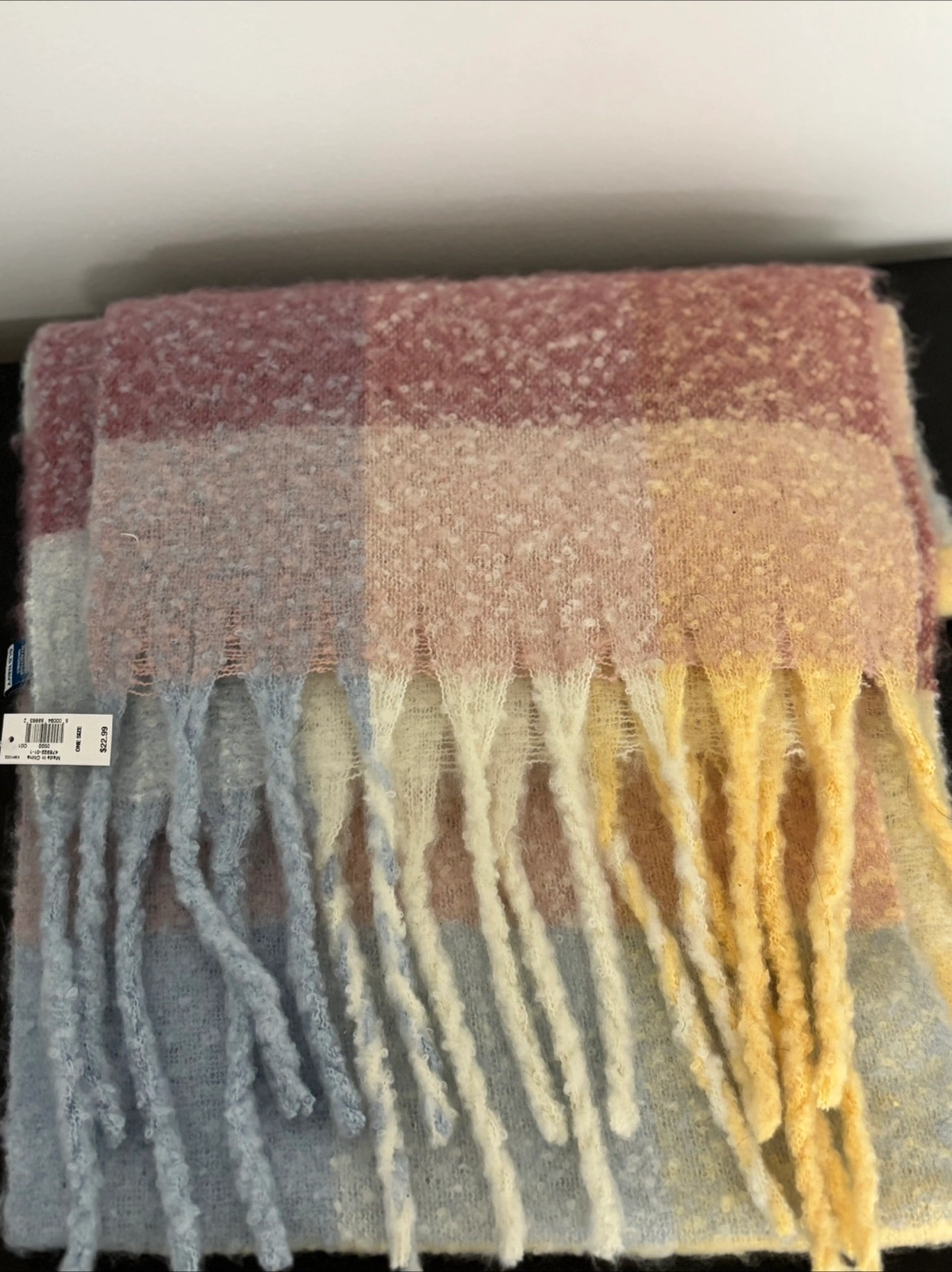 Selling a cozy Old Navy blanket scarf! Still has the tag on, never been worn. It features a lovely plaid pattern in soft pastel colours. This scarf is a one-size-fits-all and originally retailed for $22.99. Perfect for adding a touch of warmth and style to any outfit!