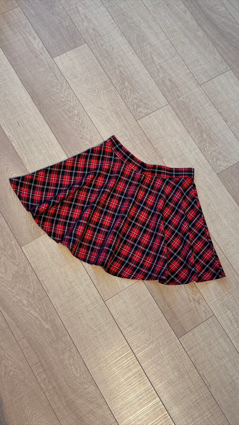 This stunning red plaid mini skirt is cut in a sunburst circle silhouette – meaning it flares beautifully from the waist and creates amazing movement as you walk or twirl 💃