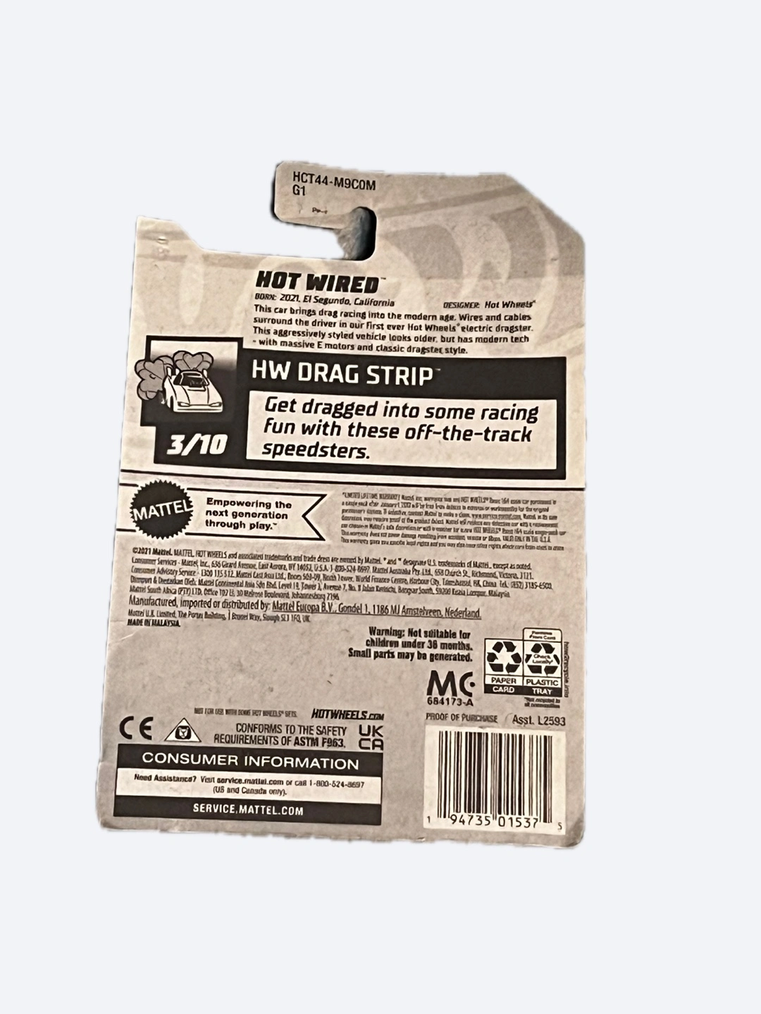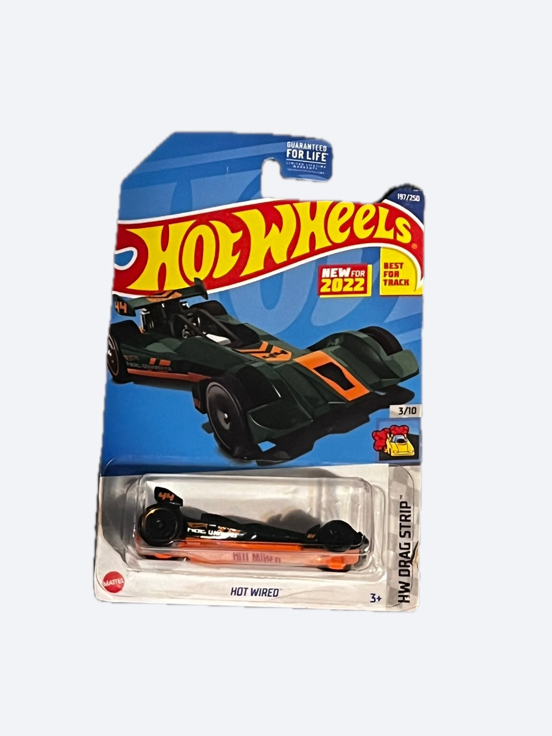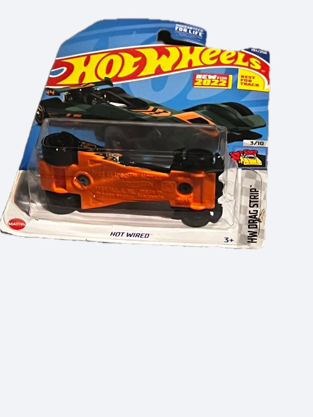 Selling a Hot Wheels car from the HW Drag Strip series! This one is the 'Hot Wired' model and it's still in its original packaging. Perfect for collectors or kids who love race cars