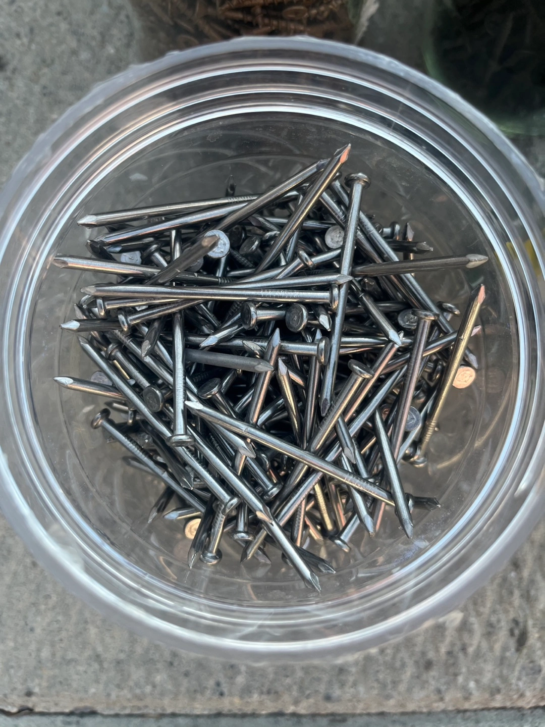 Selling a jar of nails. They appear to be about 2 inches long. Great for any projects you might have!