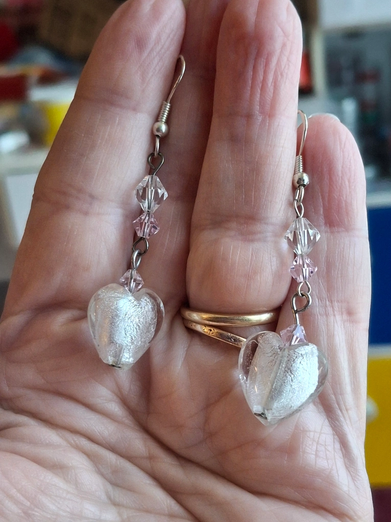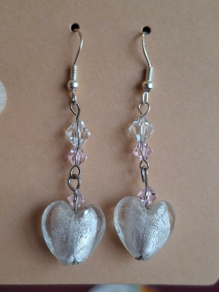 Cute heart sterling silver earrings with clear and pink crystal beads. They ready to add a little sparkle to your outfit