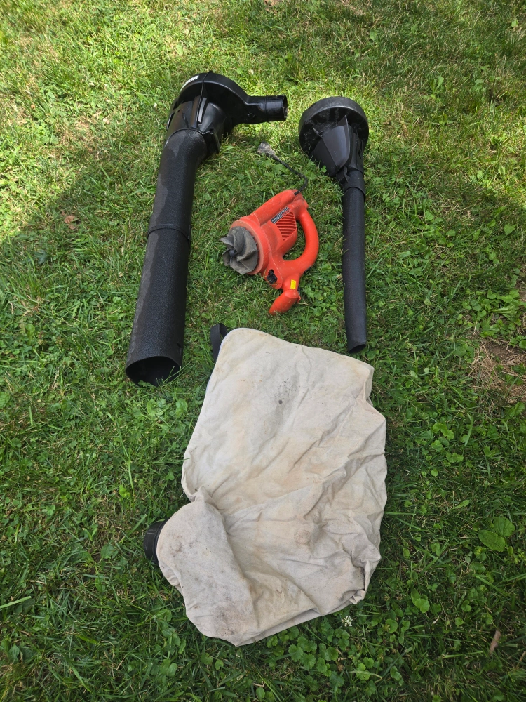 Selling a used electric Black & Decker leaf blower & mulcher with a collection bag. It's perfect for tidying up your yard this summer/fall!