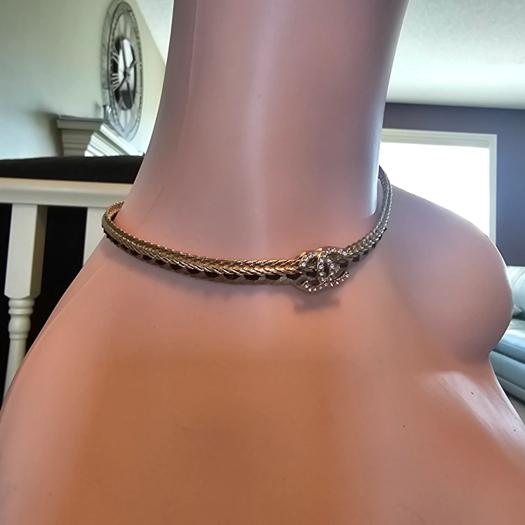 Selling a beautiful Chanel gold-tone braided chain necklace! Features the iconic Chanel logo charm and an adjustable chain length. The necklace is in great condition and ready to add a touch of elegance to any outfit
