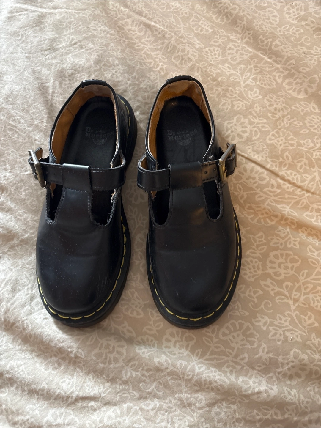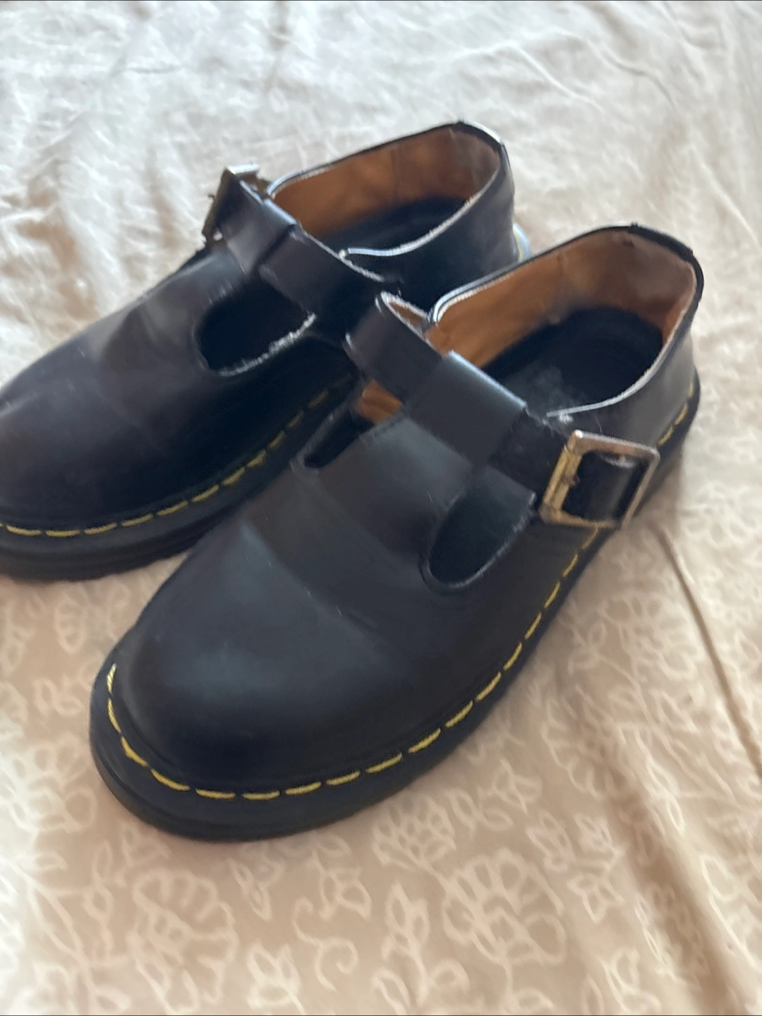Buy & SellDr. Martens Mary Jane ShoesDr. Martens Mary Jane Shoes$40Selling a pair of Doc Martens Mary Jane style shoes. They are black with yellow stitching and have a buckle closure.ConditionGoodSize7 women’s BrandDr. Martens1 chats·5 favorites·102 viewsSELLERverifiedEmilyDowntown912 reviewsWHERE TO MEETCheck Location