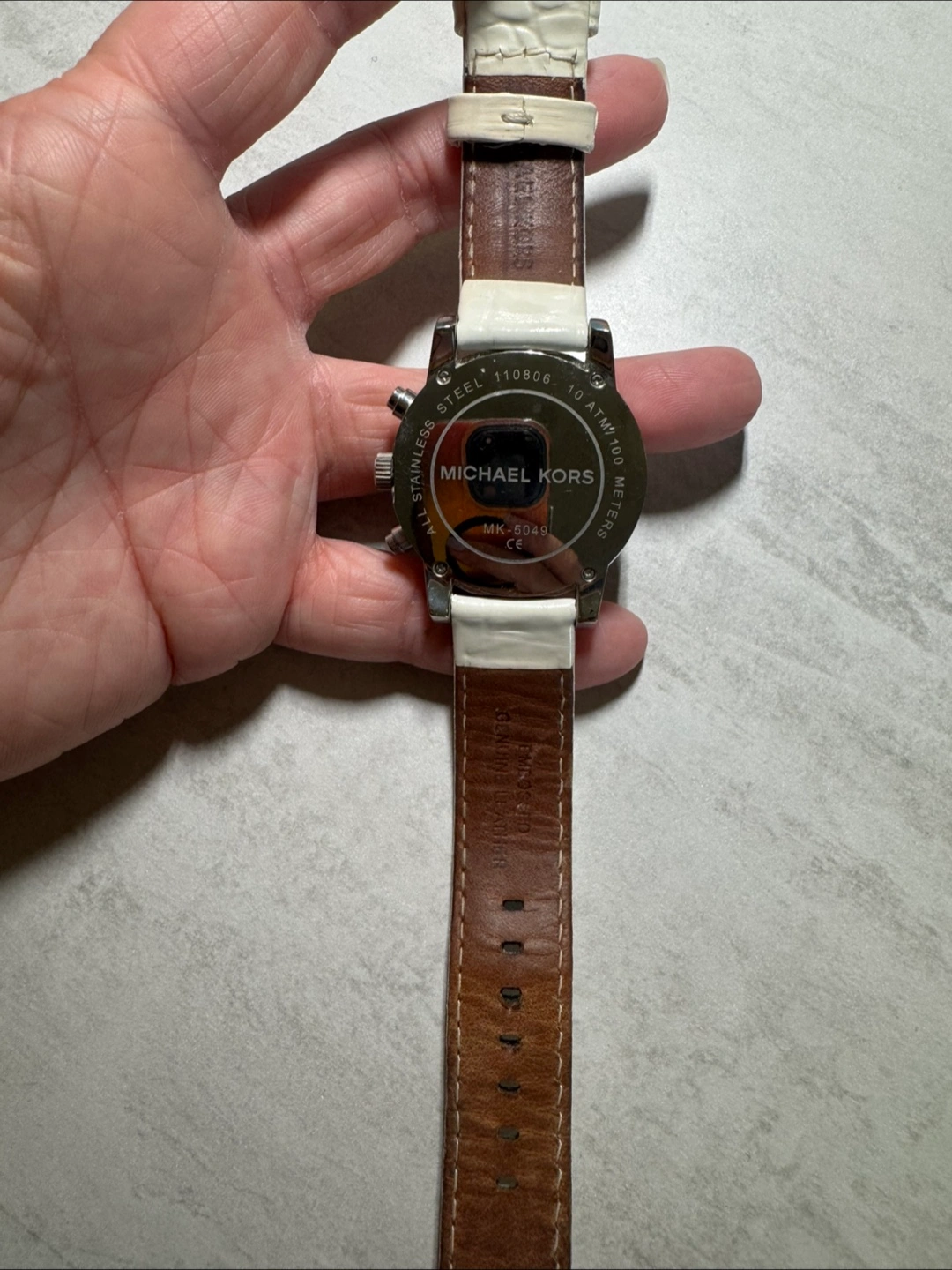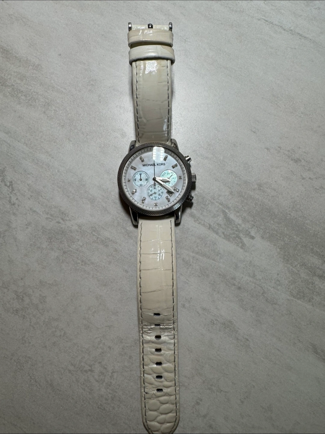 The watch has a chronograph dial with crystal accents. It's in good condition and ready for a new owner!