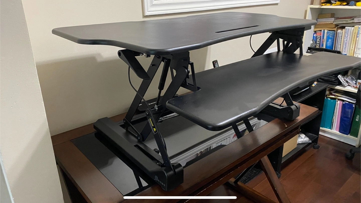 Selling a standing desk converter in black. It's in good condition and ready to help you work more comfortably!