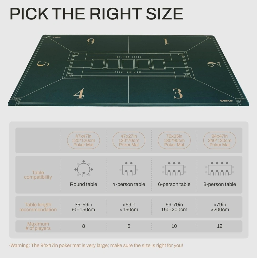 SLOWPLAY Texas Hold'em Poker Mat – 120x70cm Tabletop Surface