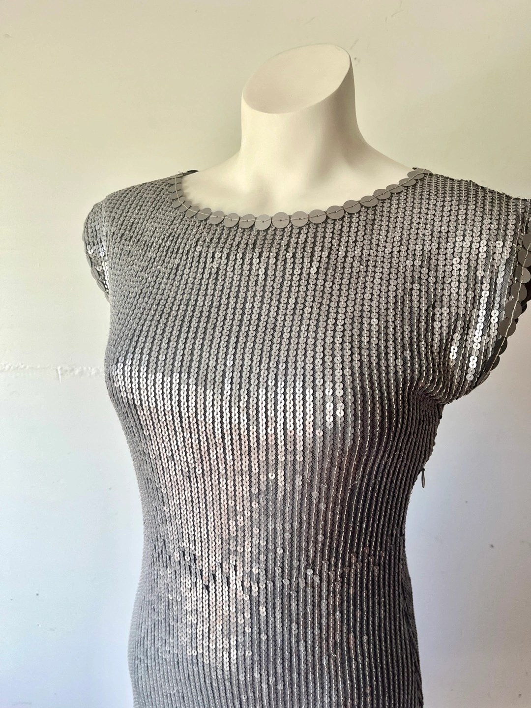 Selling a beautiful silver sequin dress! It's in like-new condition and ready for a night out. The sequins catch the light beautifully, making it a real head-turner.