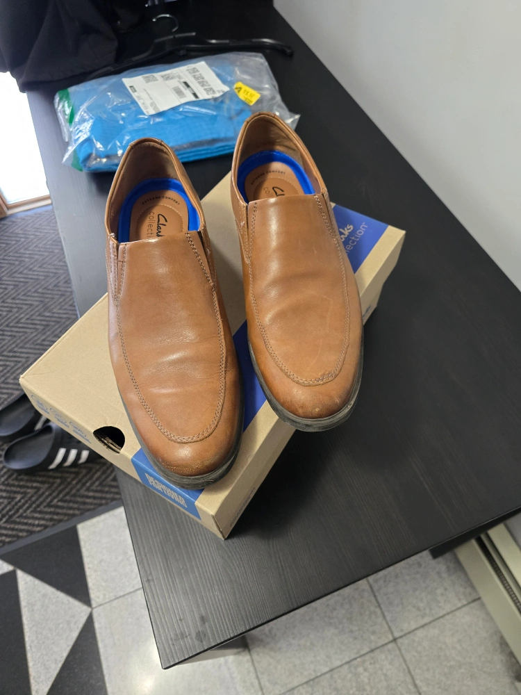 These Clarks Collection loafers are a stylish and comfortable choice for everyday wear. The leather material gives them a classic look, and the slip-on design makes them easy to wear. They show some signs of use, but are still in good condition. Comes with the original box worn for about 6 months.
