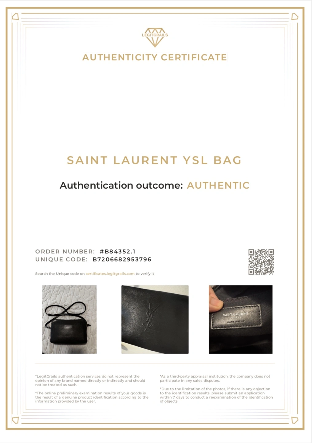 Attached is the authentication I personally paid for via LegitGrails.