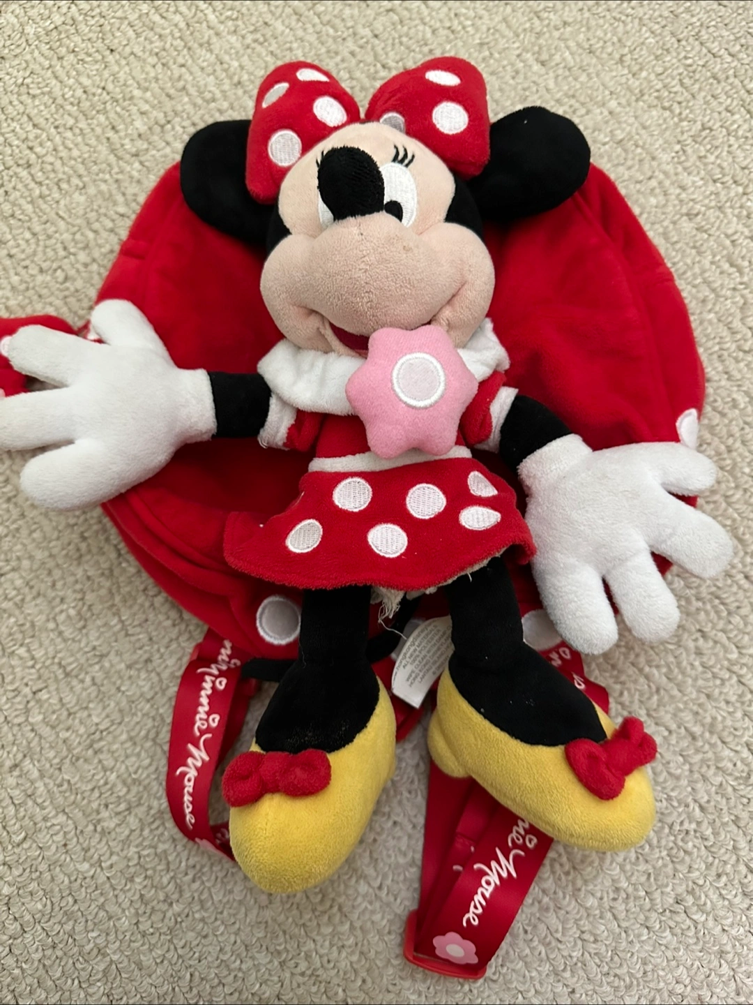 Super cute Minnie Mouse plush backpack from Hong Kong Disneyland! It's in great condition and ready for a new home. Perfect for your little one to carry their treasures