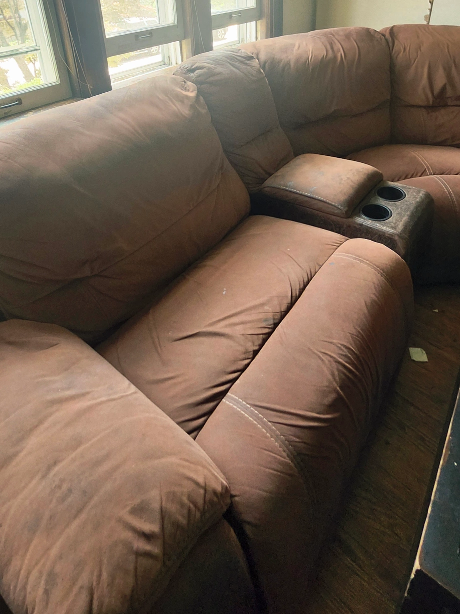 SECTIONAL COUCH SET WITH 4 SEATS AND 2 RECLINERS. CAN KEEP TOGETHER OR SEPARATE. HAS 2 CUP HOLDERS AND A CUBBY FOR REMOTE/SMALL STUFF.