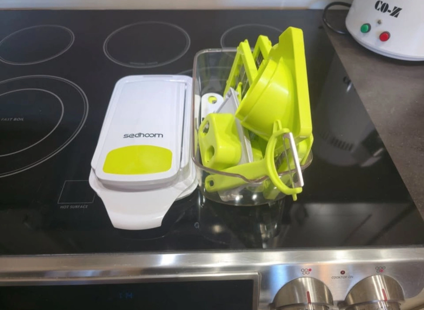 Prep meals in no time with a Sedhoom 23-in-1 Vegetable Chopper and Mandoline Slicer set. Includes multiple interchangeable blades and tools, neatly stored in a clear container. Lightly used and in excellent condition.