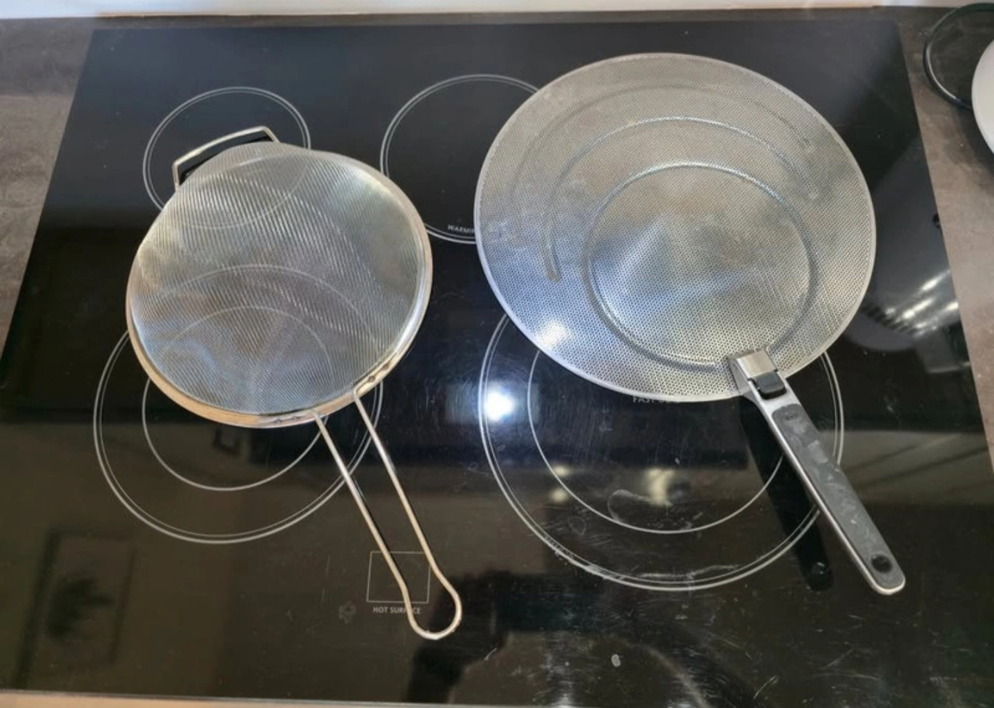 Keep your stovetop spotless with two premium splatter screens: a fine mesh stainless steel model with a double-wire handle and a wide non-stick OXO version with a heat-resistant grip. Perfect for bacon, burgers, and more.