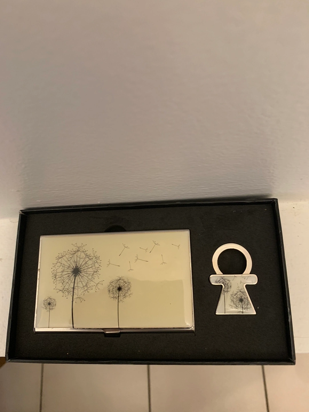 Selling a Holi Life Style business card holder set! It includes a business/credit card holder and a matching keychain. The set comes in its original box. Never used. Back of the holder has one scratch, see third picture.