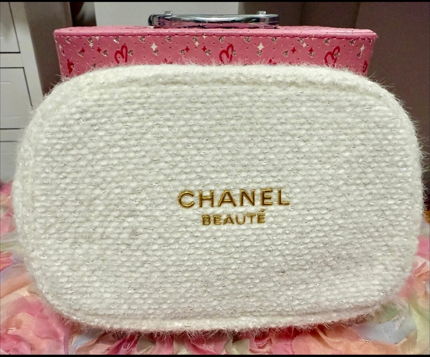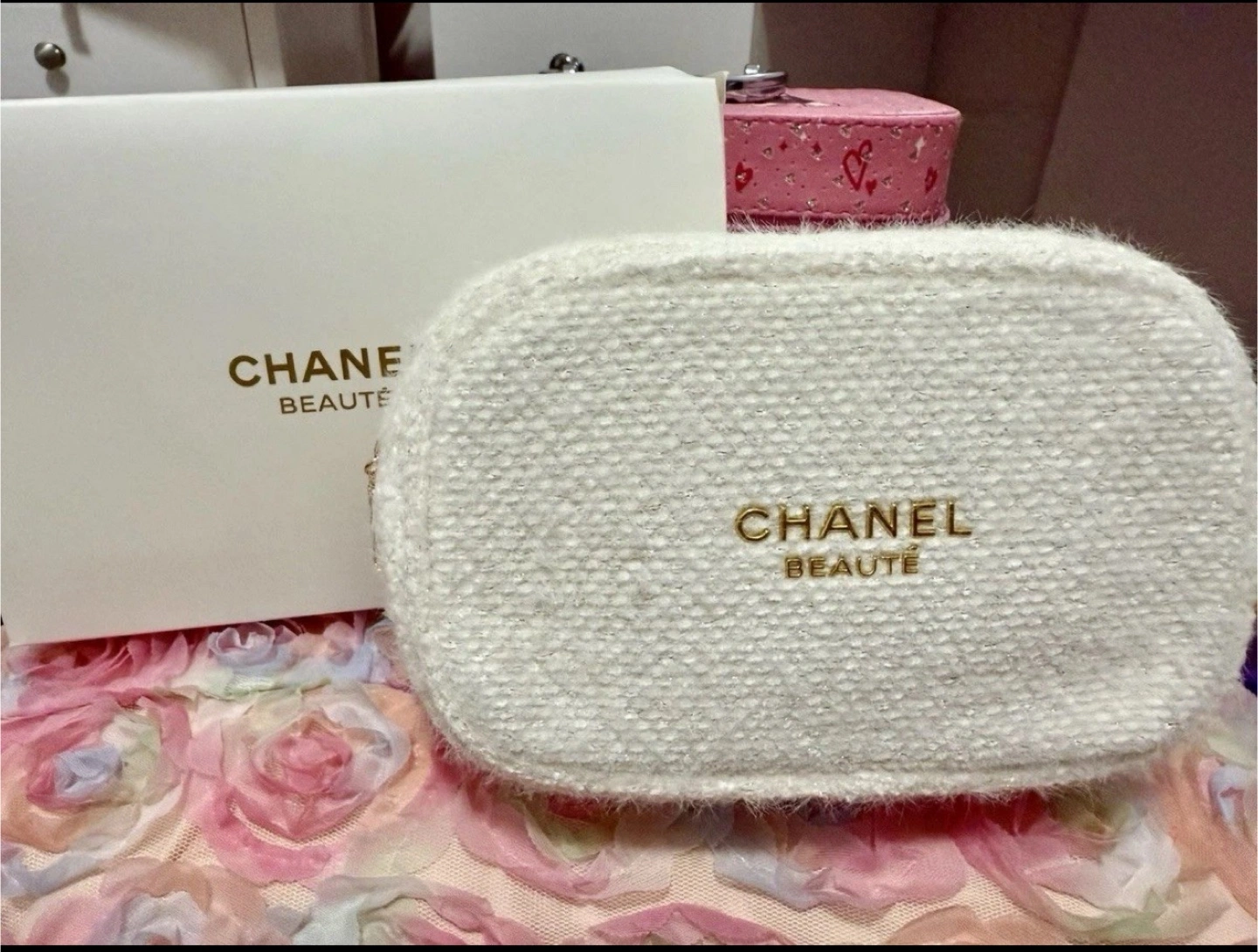 Chanel Beaute White Cosmetic Pouch with Box