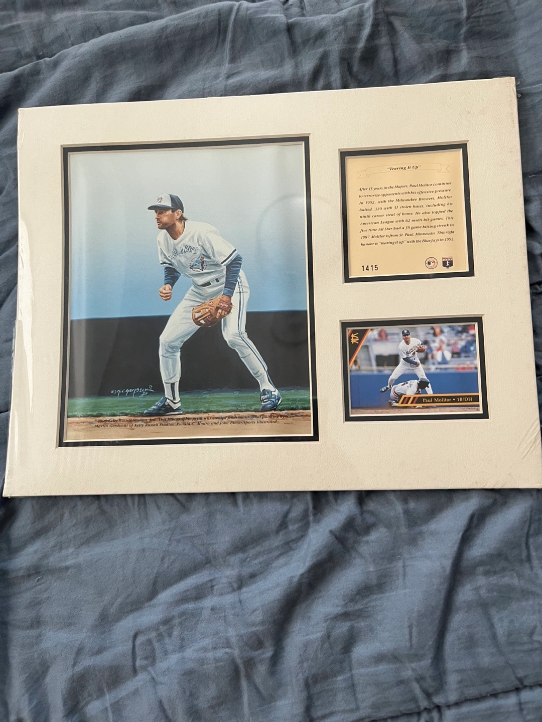 Selling a set of three framed lithographs featuring Roberto Alomar, Joe Carter, and Paul Molitor. They are Hall of Fame inductees with multiple All Star recognitions. As well they are part of the 92 and 93 World Series champions. Each lithograph includes a player image and a smaller baseball card image, all professionally framed and ready to hang in your home or office. Perfect for any Blue Jays fan or baseball memorabilia collector!