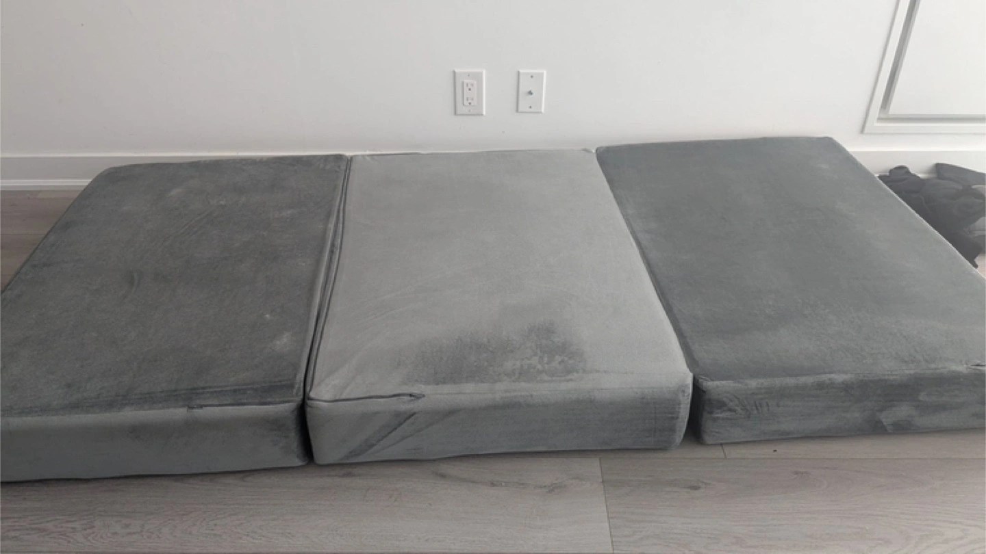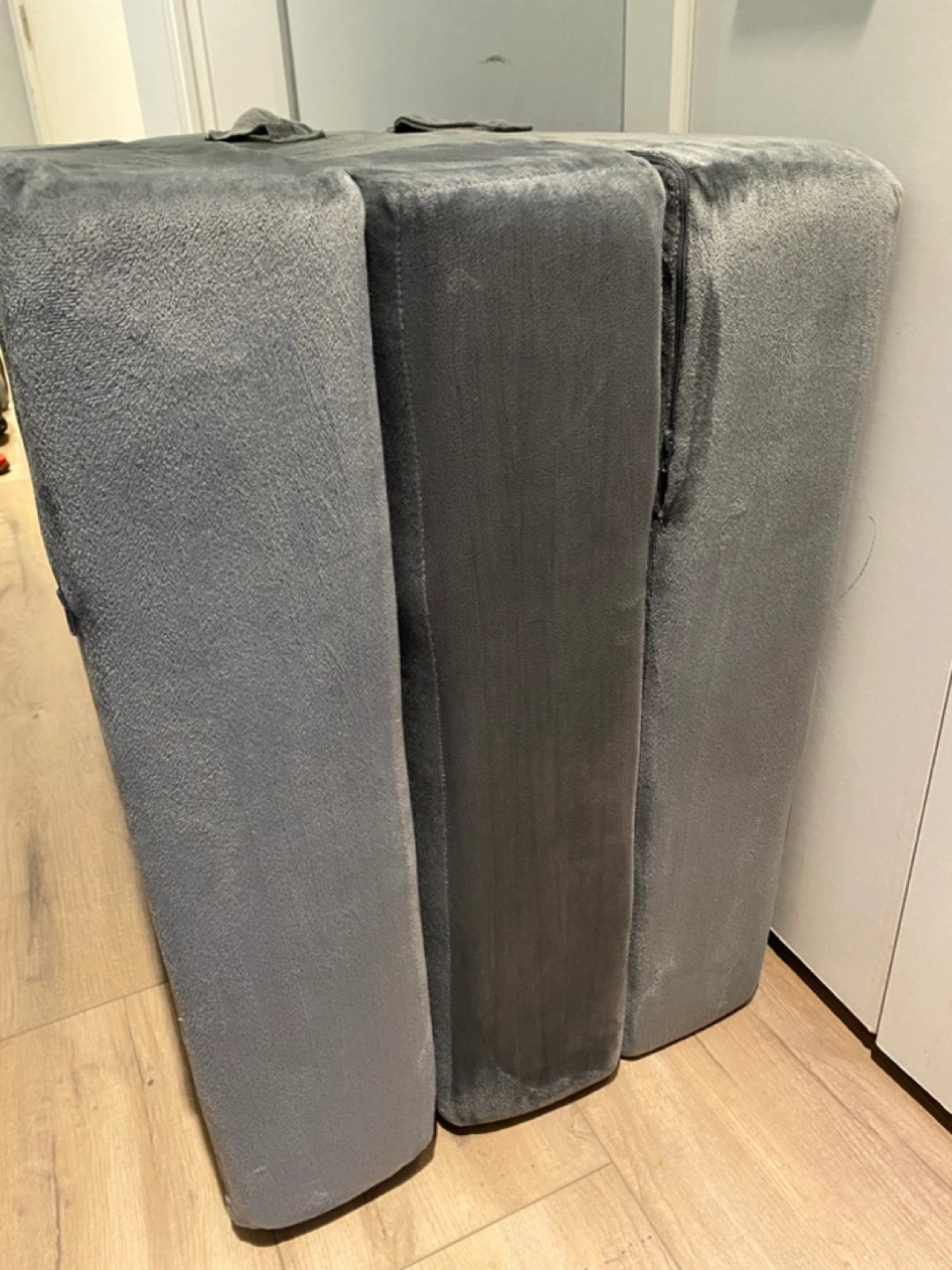 Selling a Tri-Fold Memory Foam Mattress, perfect as a 6-inch twin folding mattress. It comes with washable covers and has a reversible design. Great as a foldable mattress topper for travel and guests!