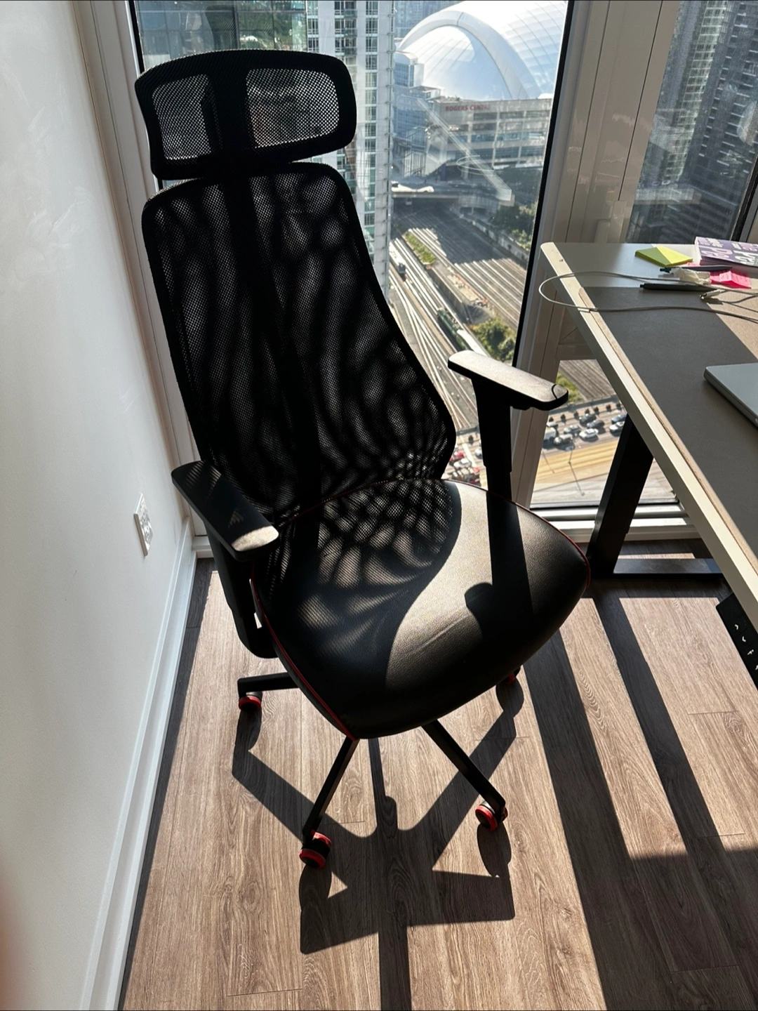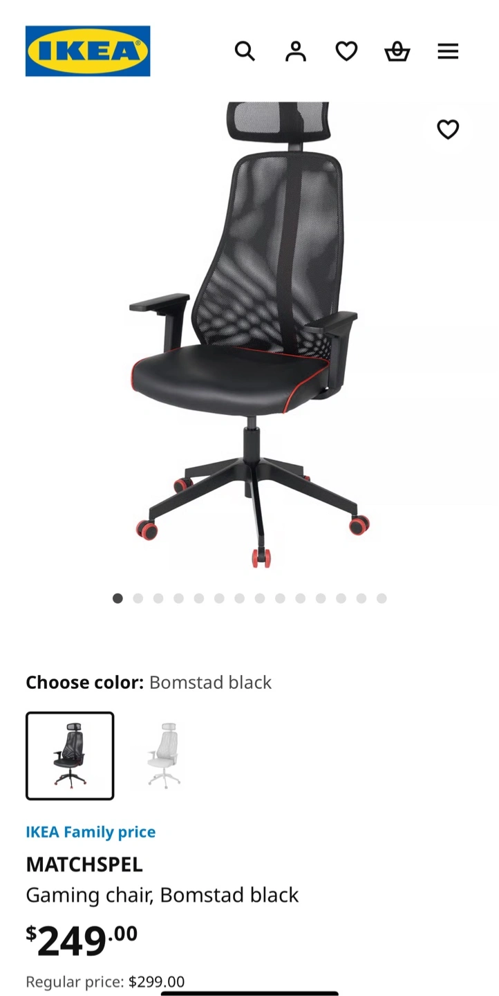 Selling an IKEA MATCHSPEL chair in Bomstad black. It's in great shape and ready for a new home! The chair is designed for comfort and support during long gaming sessions or workdays.