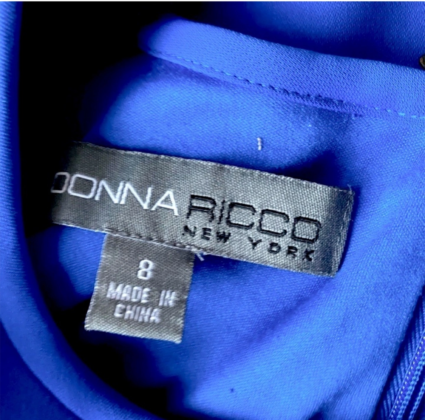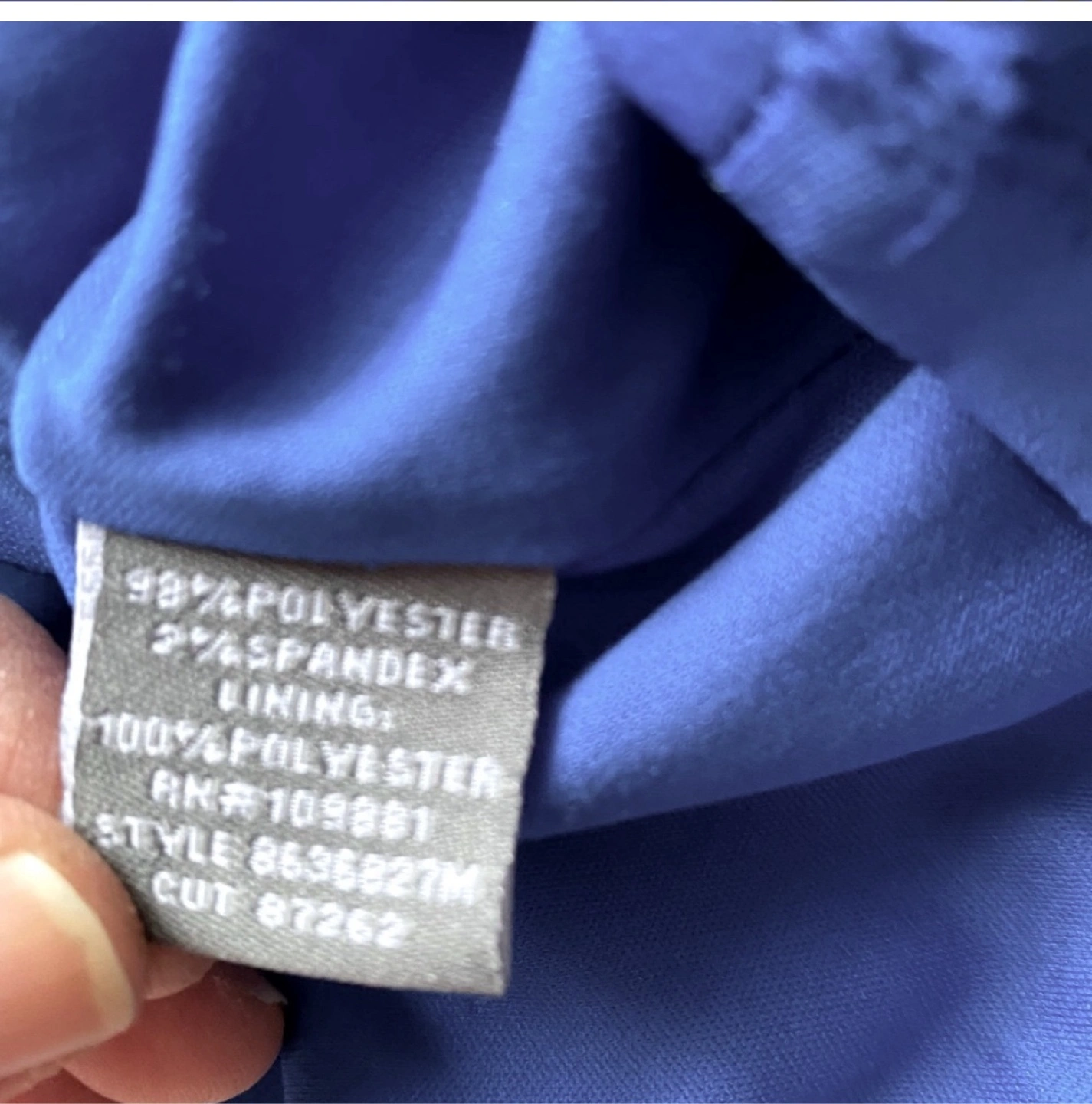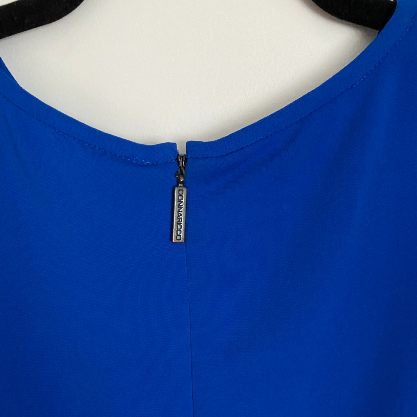 Here's a lovely blue sleeveless dress! It looks to be in great condition and ready for a new home. Perfect for a party or a special occasion. Waist across is 16-17 inches with a little give. Pit to pit is 19” stretched. Hips about 20”,Length 36”. Excellent condition. Tailored well made dress.