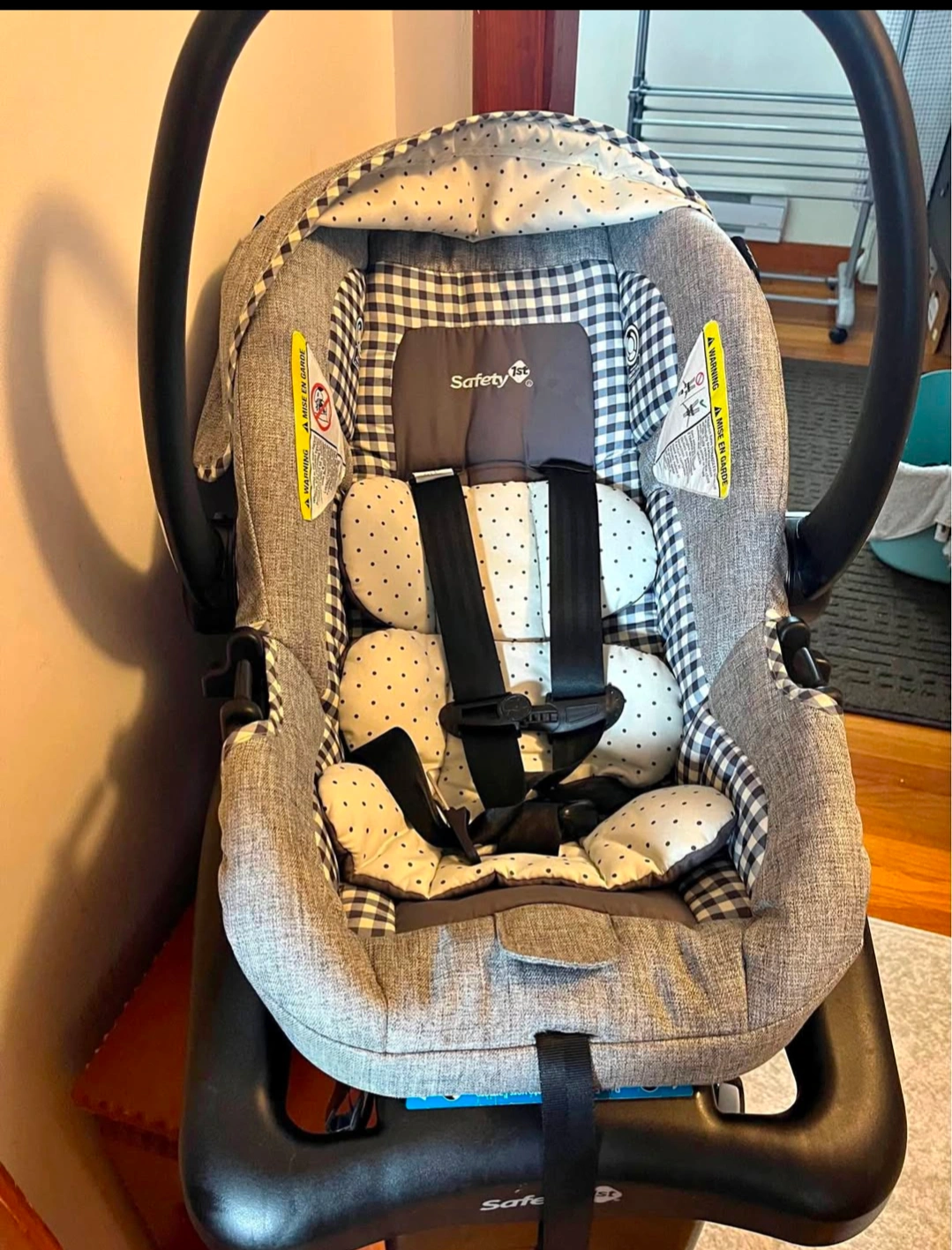 Selling a Safety 1st infant car seat. It's in great condition and ready for a new little one! The seat is grey and has a cute patterned lining. It's rear-facing for infants between 1.8-16.1 kg (4-35.5 lb) and 81.3 cm (32 in) or less. Expiry date is 2027.