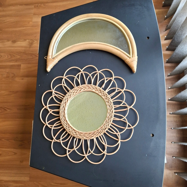 Rattan Flower Mirror & Half Moon Mirror Set *minor flaws*