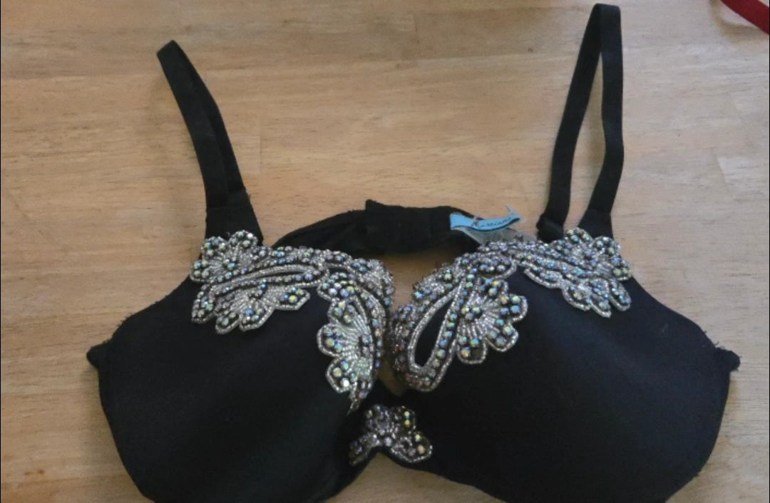 Selling a gently used black bikini top. It has beautiful beaded jewels detailing on the cups. I have a red one also, $50 if you buy both.