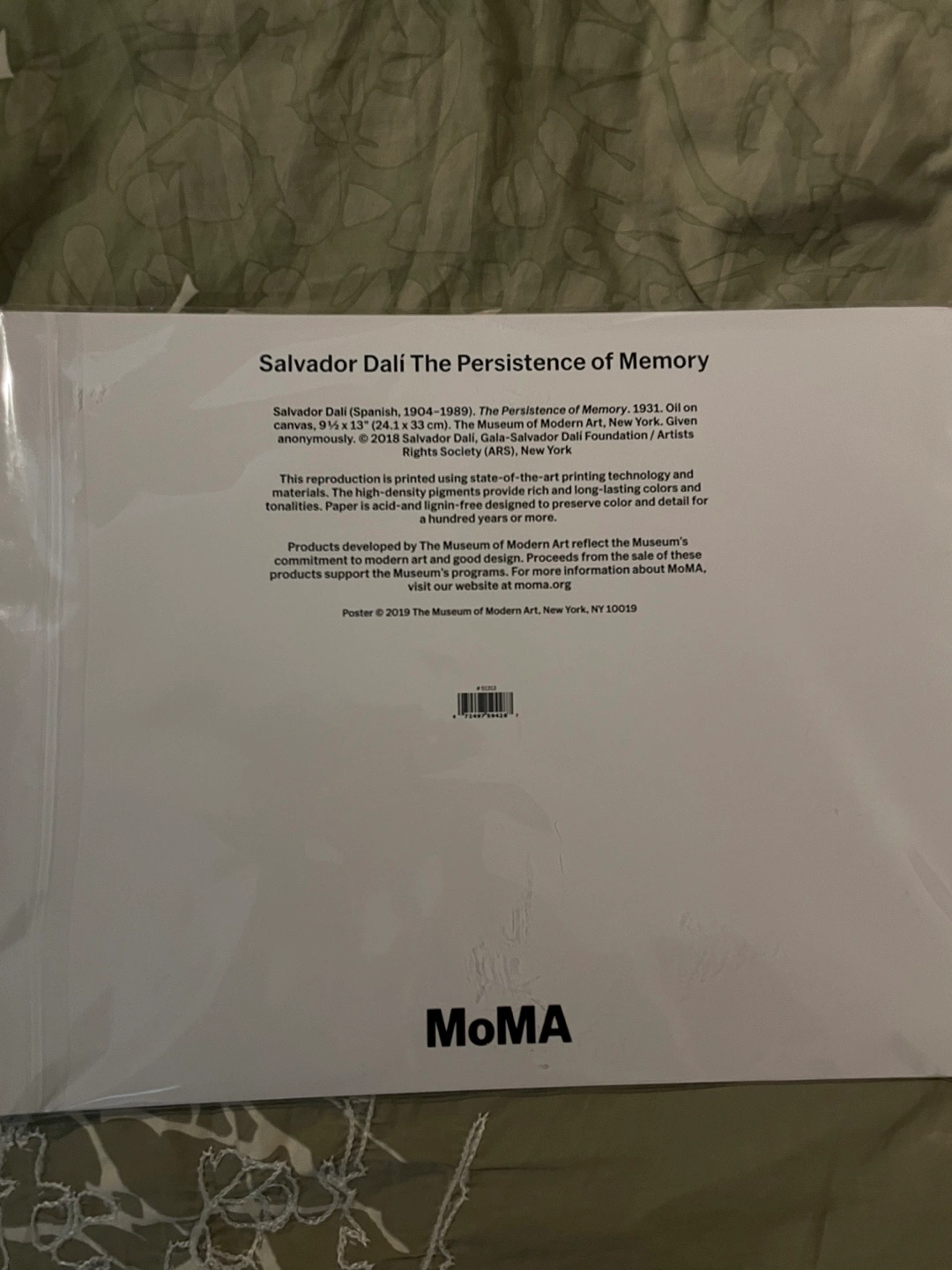 MOMA Salvador Dali 'Persistence of Memory’ print